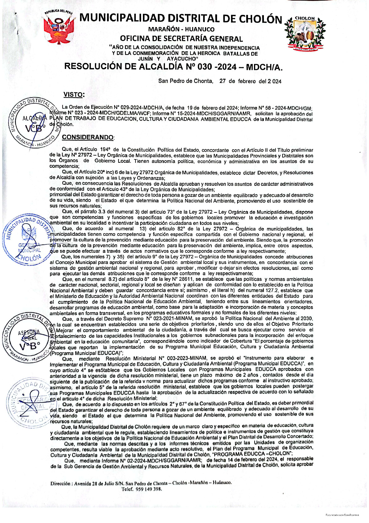 | PT 2024 MD Cholón (Marañon - HUÁNUCO) RA - 030-2024-MDCH-A..pdf | 5.95 MB |