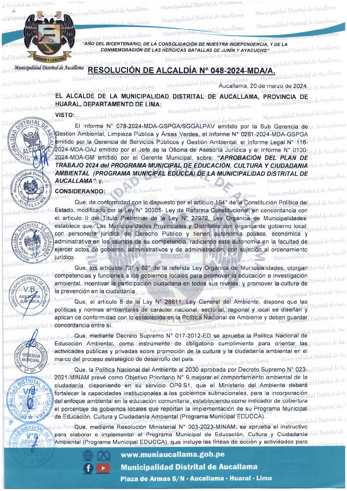| PT EDUCCA 2024 MD AUCALLAMA (HUARAL, LIMA) RA 048-2024-MDA-A..pdf | 2.29 MB |