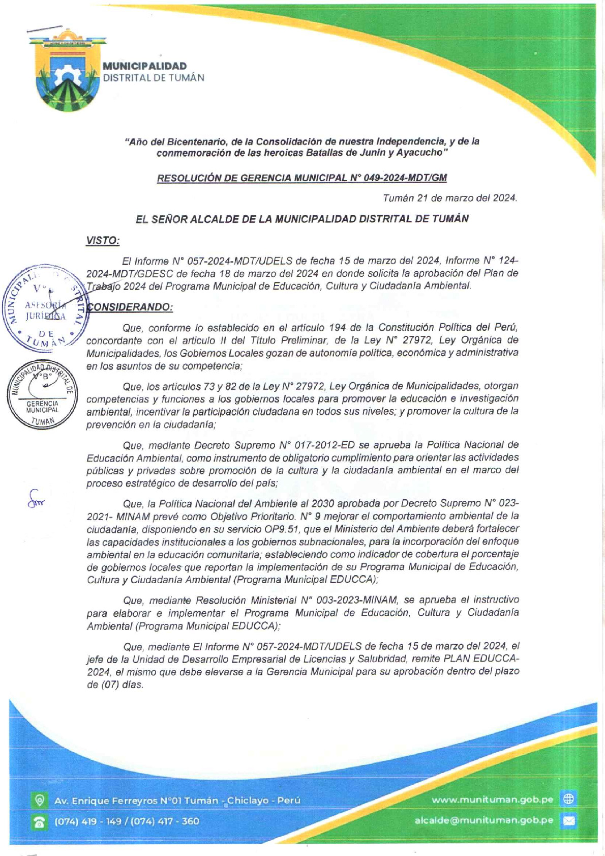 | PT 2024 MD Tumán (Chiclayo, Lambayeque) RGM - 049-2024-MDT-GM.pdf | 2.01 MB |