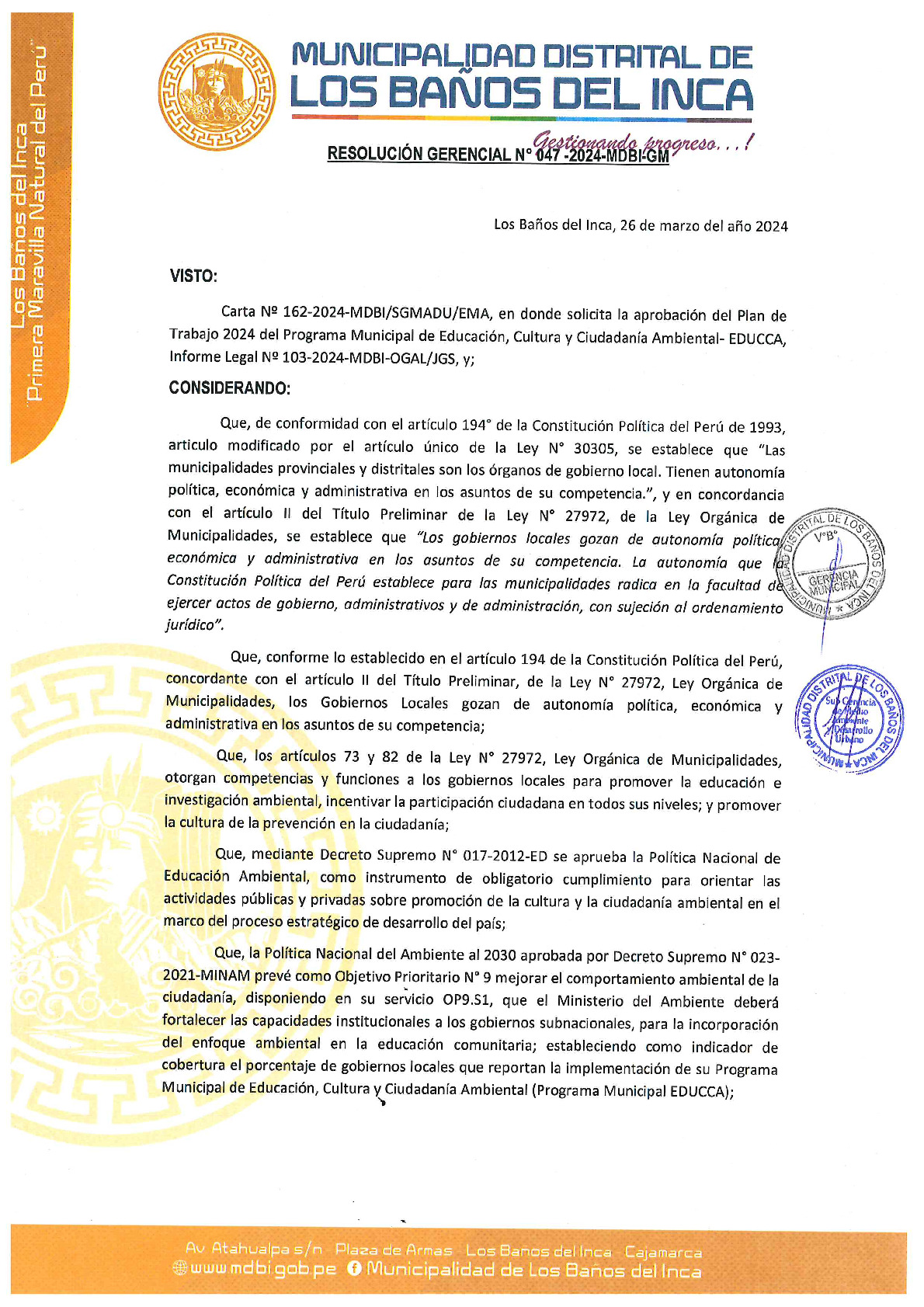 | PT 2024 MD Los Baños del Inca (Cajamarca, Cajamarca) RGM - 047-2024-MDBI-GM.pdf | 4.92 MB |