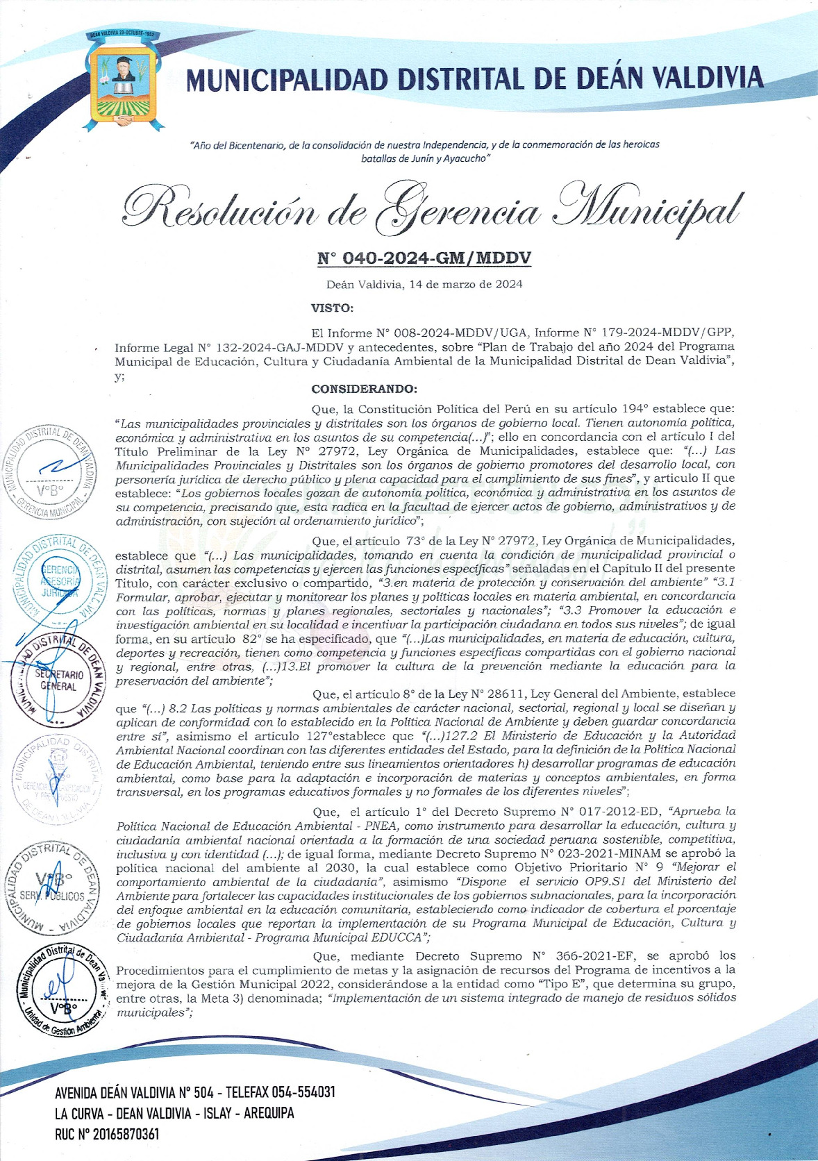 | PT EDUCCA 2024 MD DEAN VALDIVIA (ISLAY, AREQUIPA) RGM - 040-2024-GM-MDDV.pdf | 7.37 MB |