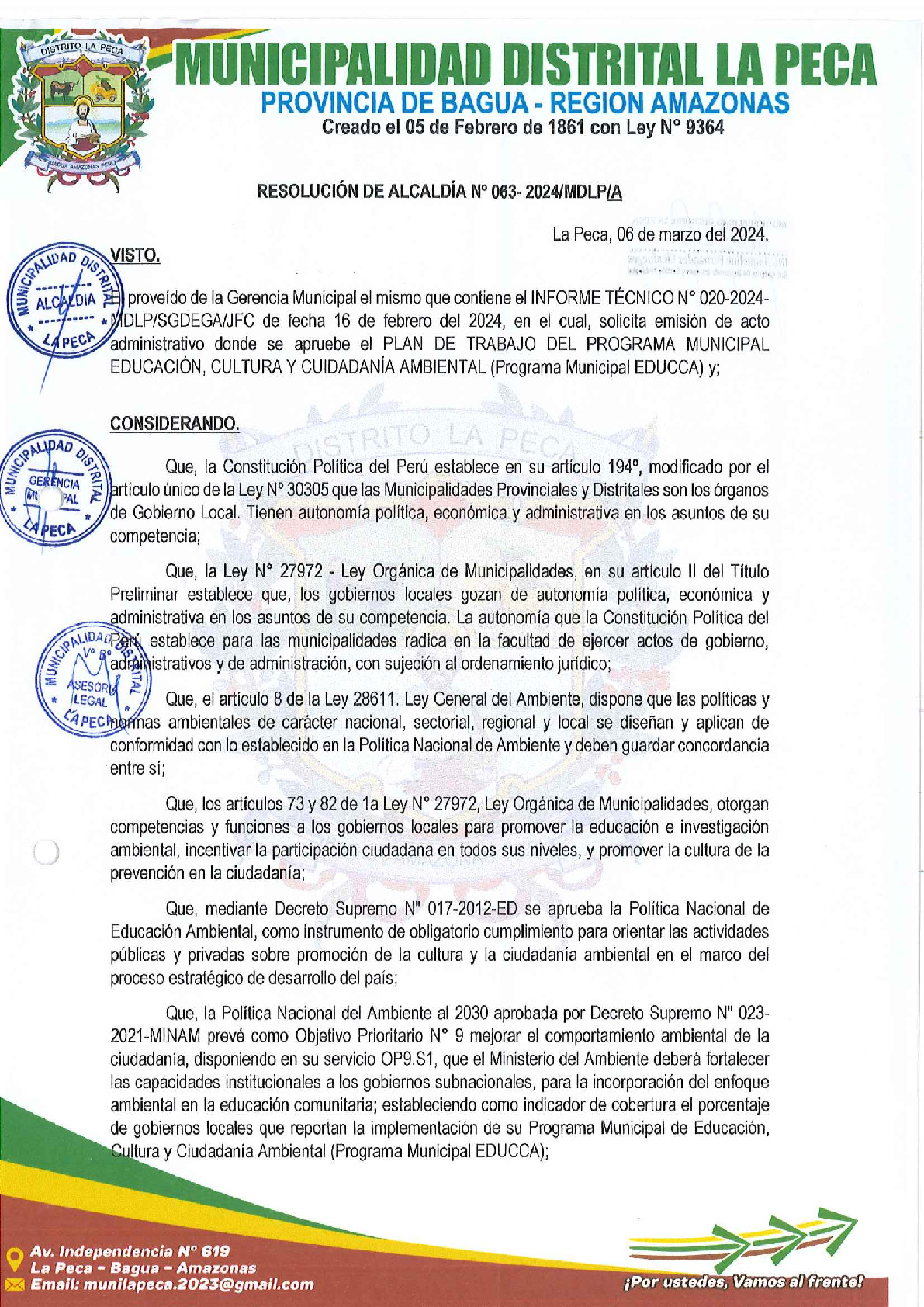 | 32 PT 2024 MD La Peca (Bagua -AMAZONAS) RA - 063-2024-MDLP-A.pdf | 3.15 MB |