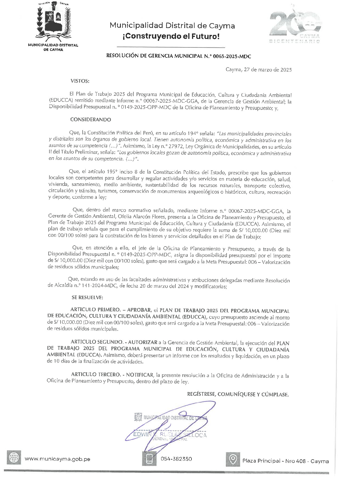 | PT EDUCCA 2025 MD CAYMA AREQUIPA AREQUIPA RGM 065-2025-MDC.pdf | 1.09 MB |
