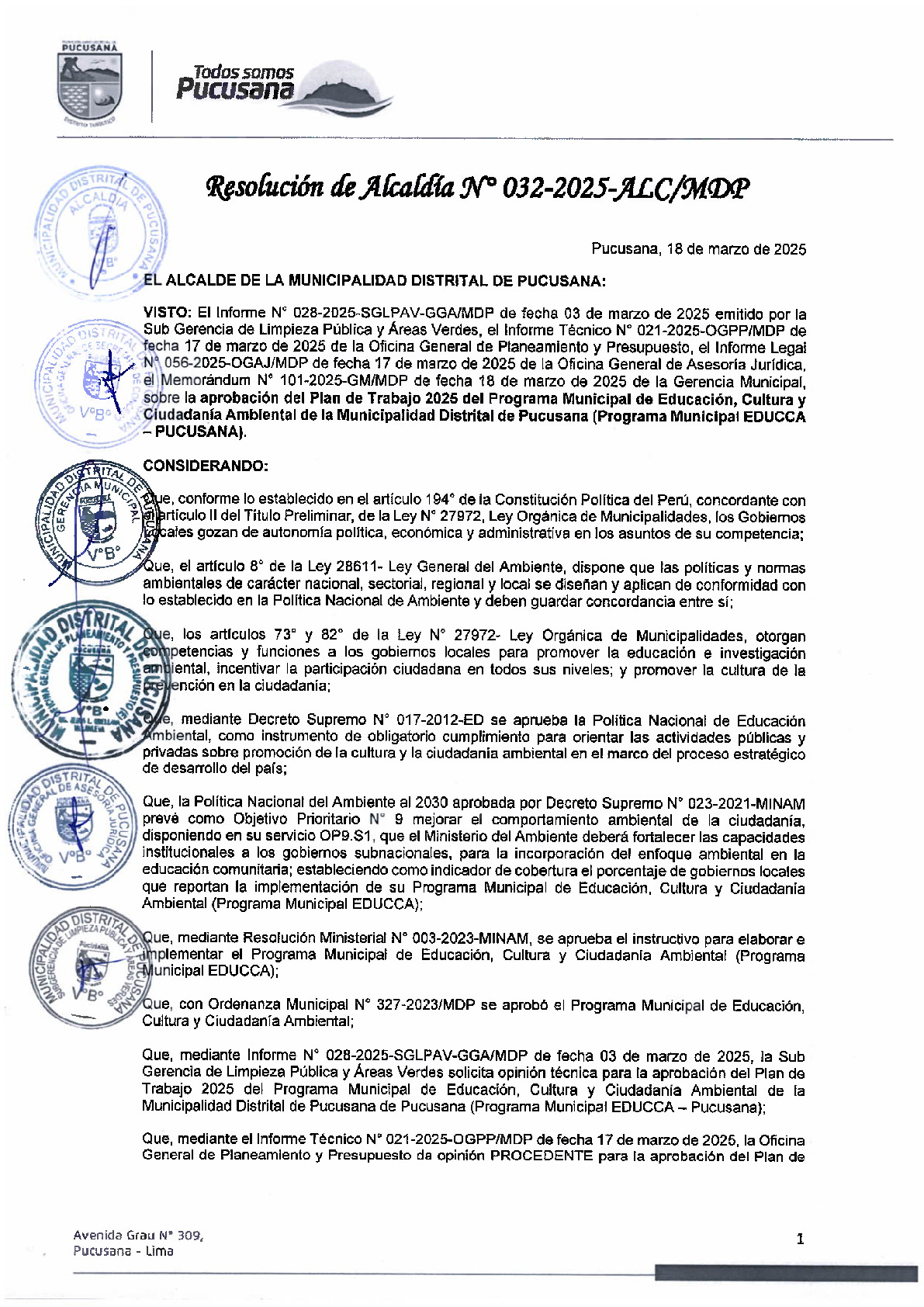 La presente Resolución de Alcaldía aprueba el Plan de Trabajo 2025 del Programa Municipal de Educación, Cultura y Ciudadanía Ambiental de la Municipalidad Distrital de Pucusana (Lima Metropolitana), con la finalidad de definir las actividades de educación, cultura y ciudadanía ambiental que se desarrollaran en la localidad durante el presente año.