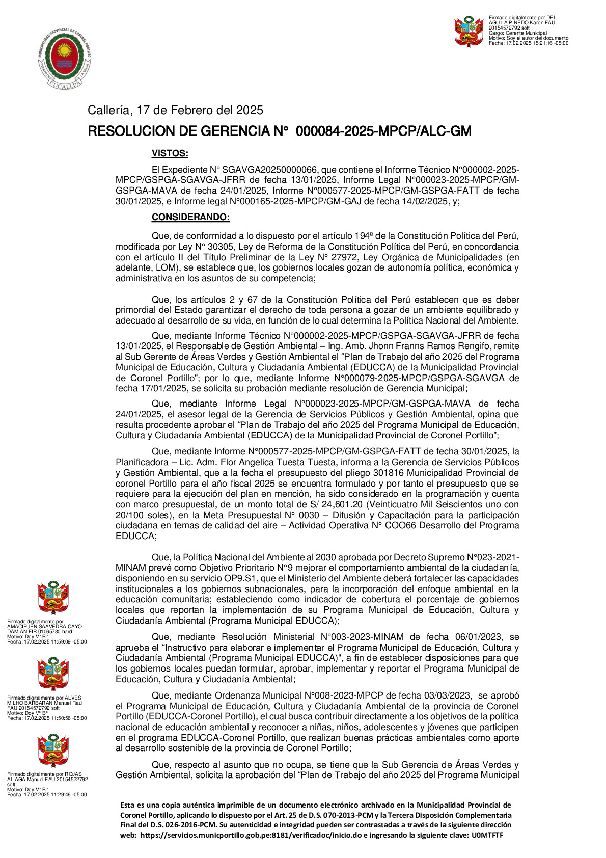 | 18 PT EDUCCA 2025 MP CORONEL PORTILLO UCAYALI RGM 084-2025-MPCP-ALC-GM.pdf | 1.62 MB |