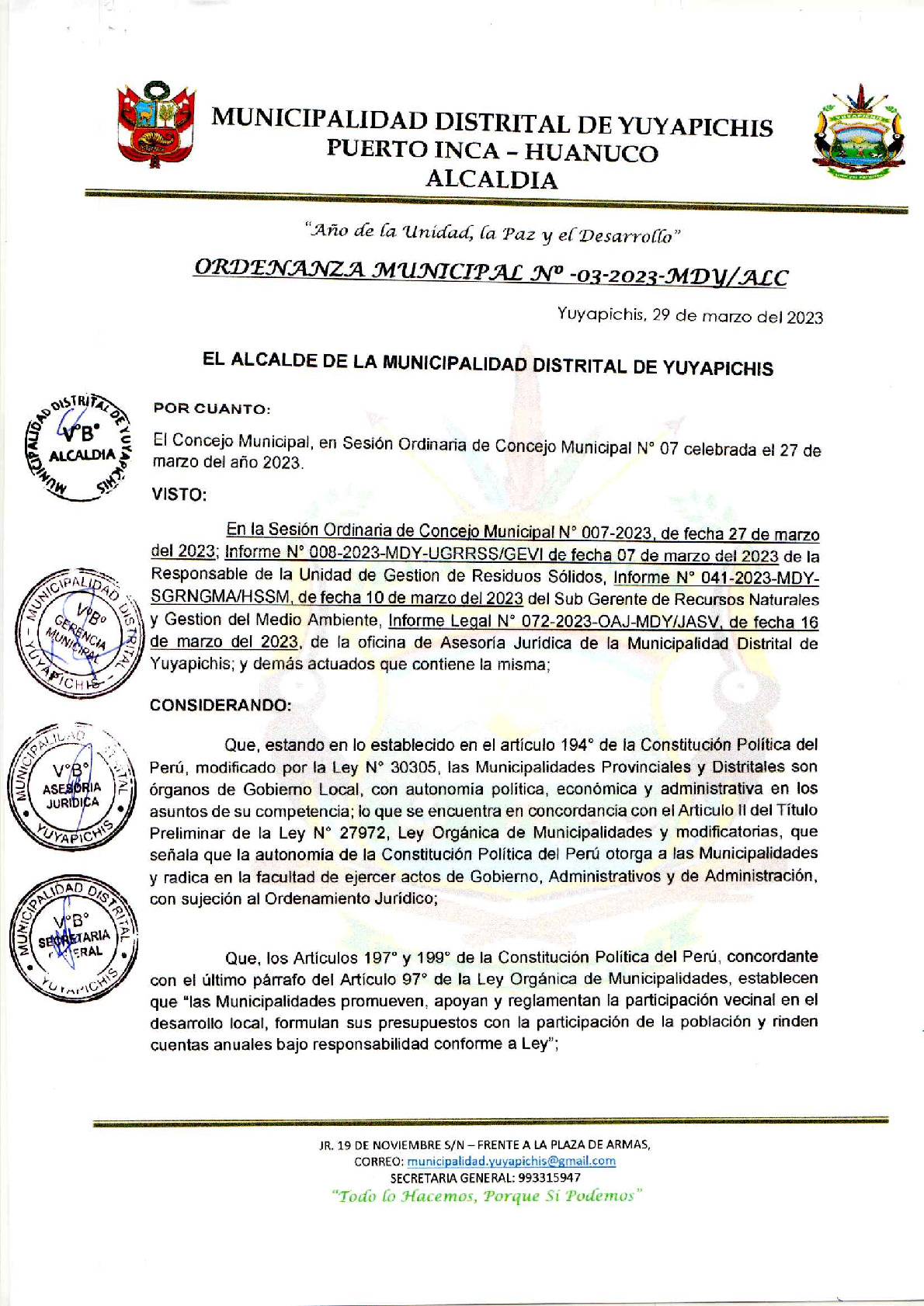 La presente Ordenanza aprueba el Programa Municipal de Educación, Cultura y Ciudadanía Ambiental de la Municipalidad Distrital de Yuyapichis - Puerto Inca (Huánuco), con la finalidad de promover la cultura y la educación ambiental para la formación de ciudadanas y ciudadanos ambientalmente responsables e incentivar la participación ciudadana en todos sus niveles.