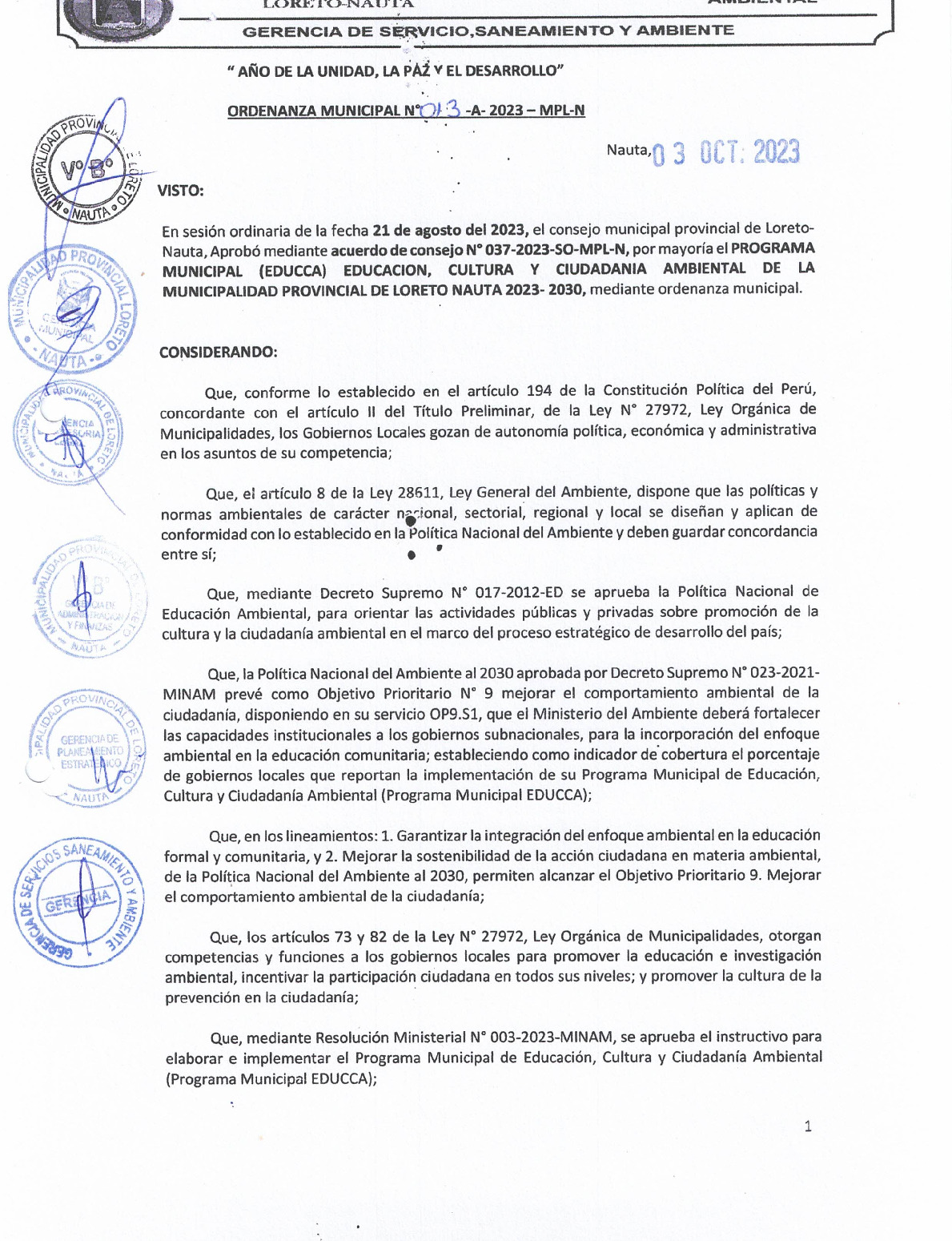 Programa Municipal de Educación, Cultura y Ciudadanía Ambiental de la Municipalidad Provincial de Loreto