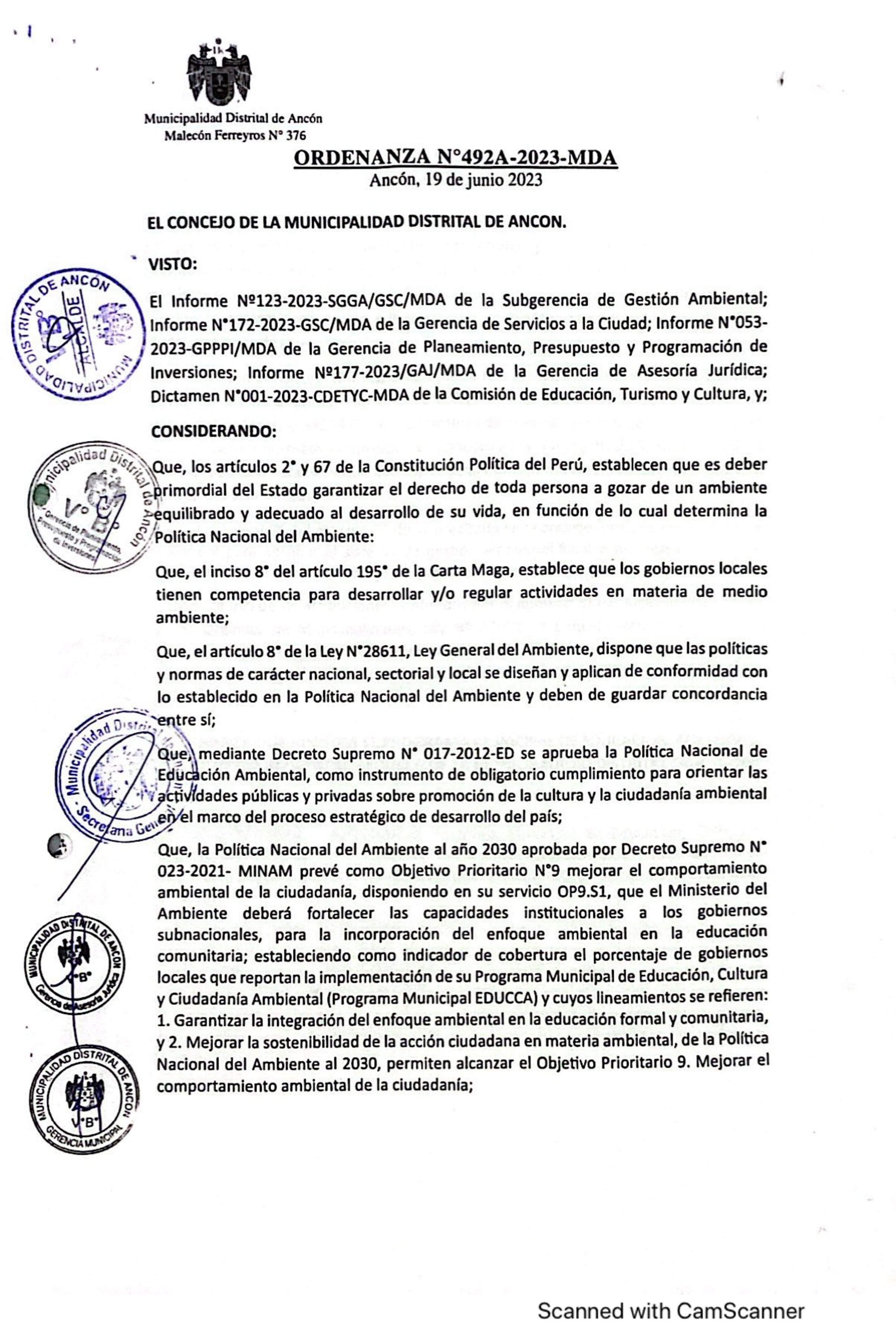 La presente Ordenanza aprueba el Programa Municipal de Educación, Cultura y Ciudadanía Ambiental de la Municipalidad Distrital de Ancón - Lima (Lima Metropolitana), con la finalidad de promover la cultura y la educación ambiental para la formación de ciudadanas y ciudadanos ambientalmente responsables e incentivar la participación ciudadana en todos sus niveles.