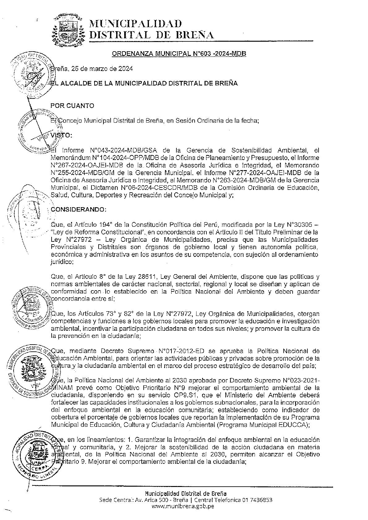 La presente Ordenanza aprueba el Programa Municipal de Educación, Cultura y Ciudadanía Ambiental de la Municipalidad Distrital de Breña - Lima (Lima Metropolitana), con la finalidad de promover la cultura y la educación ambiental para la formación de ciudadanas y ciudadanos ambientalmente responsables e incentivar la participación ciudadana en todos sus niveles.