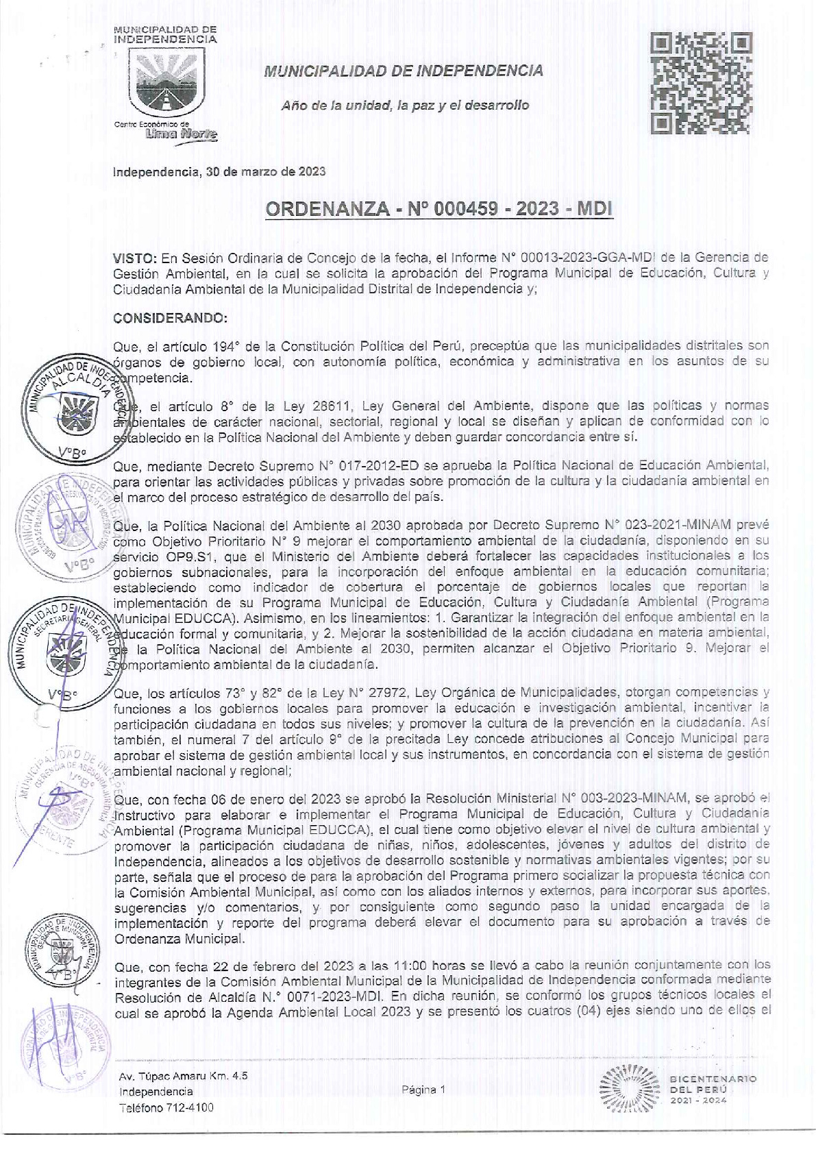 Programa Municipal de Educación, Cultura y Ciudadanía Ambiental de la Municipalidad Distrital de Independencia