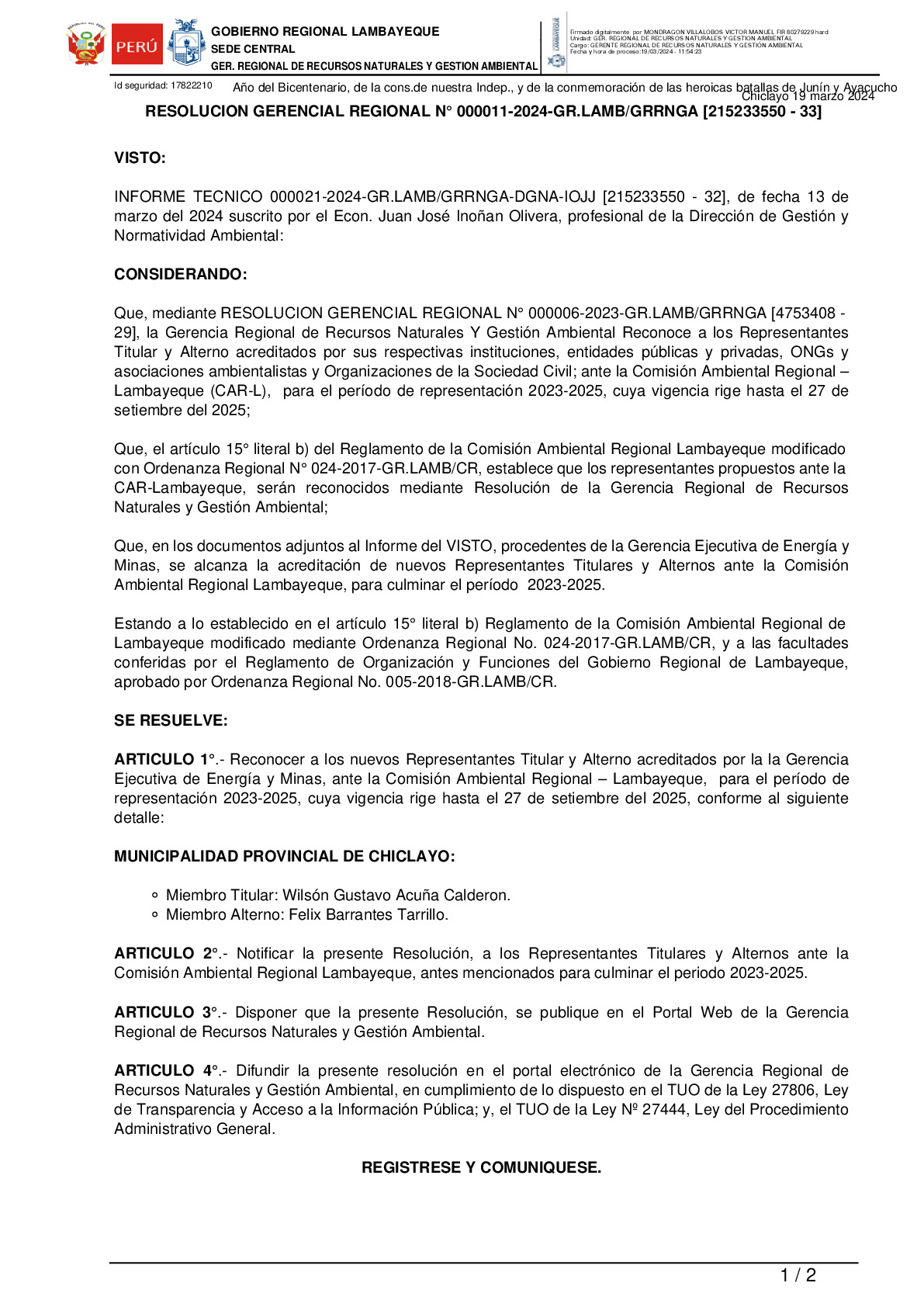 RESOLUCION GERENCIAL REGIONAL N° 000011-2024-GR.LAMB/GRRNGA [215233550 - 33]