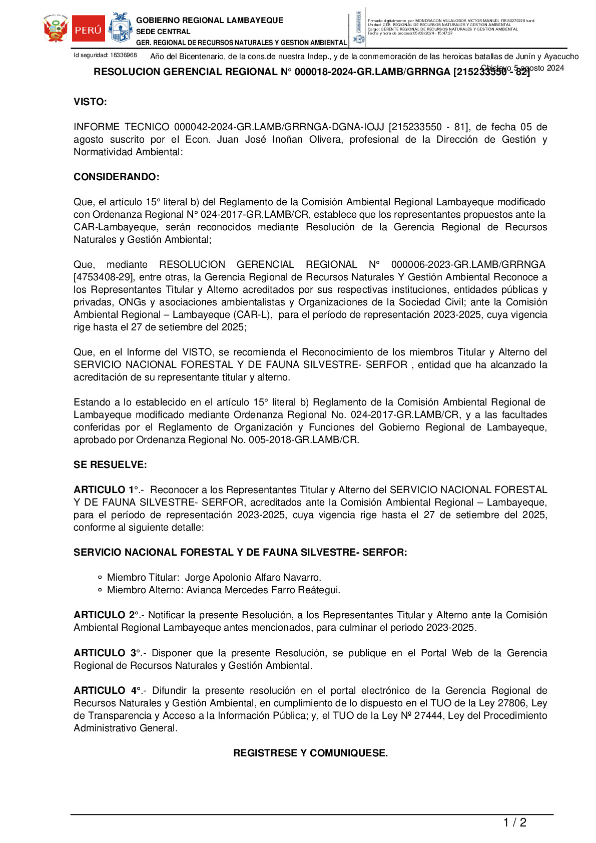 RESOLUCION GERENCIAL REGIONAL N° 000018-2024-GR.LAMB/GRRNGA [215233550 - 82]