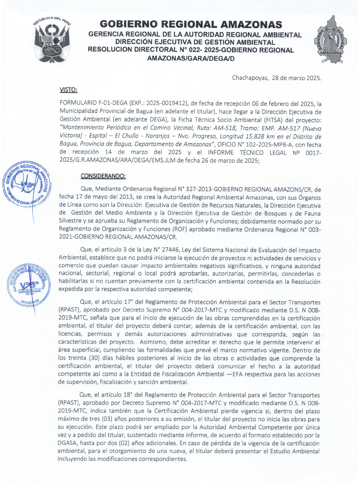 Resolución Directoral N° 022-2025 Gobierno Regional Amazonas