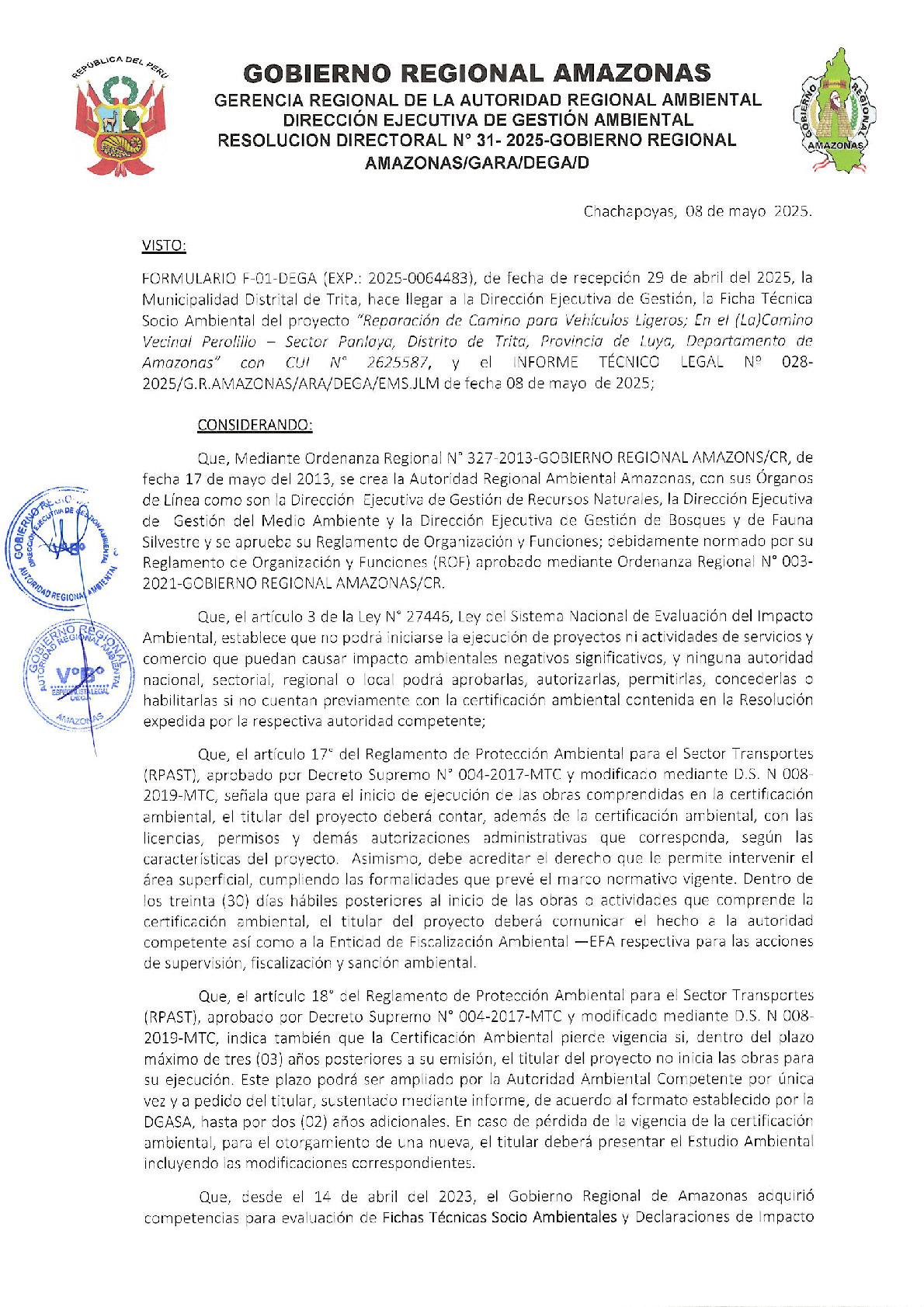 Resolución Directoral N° 031-2025 Gobierno Regional Amazonas