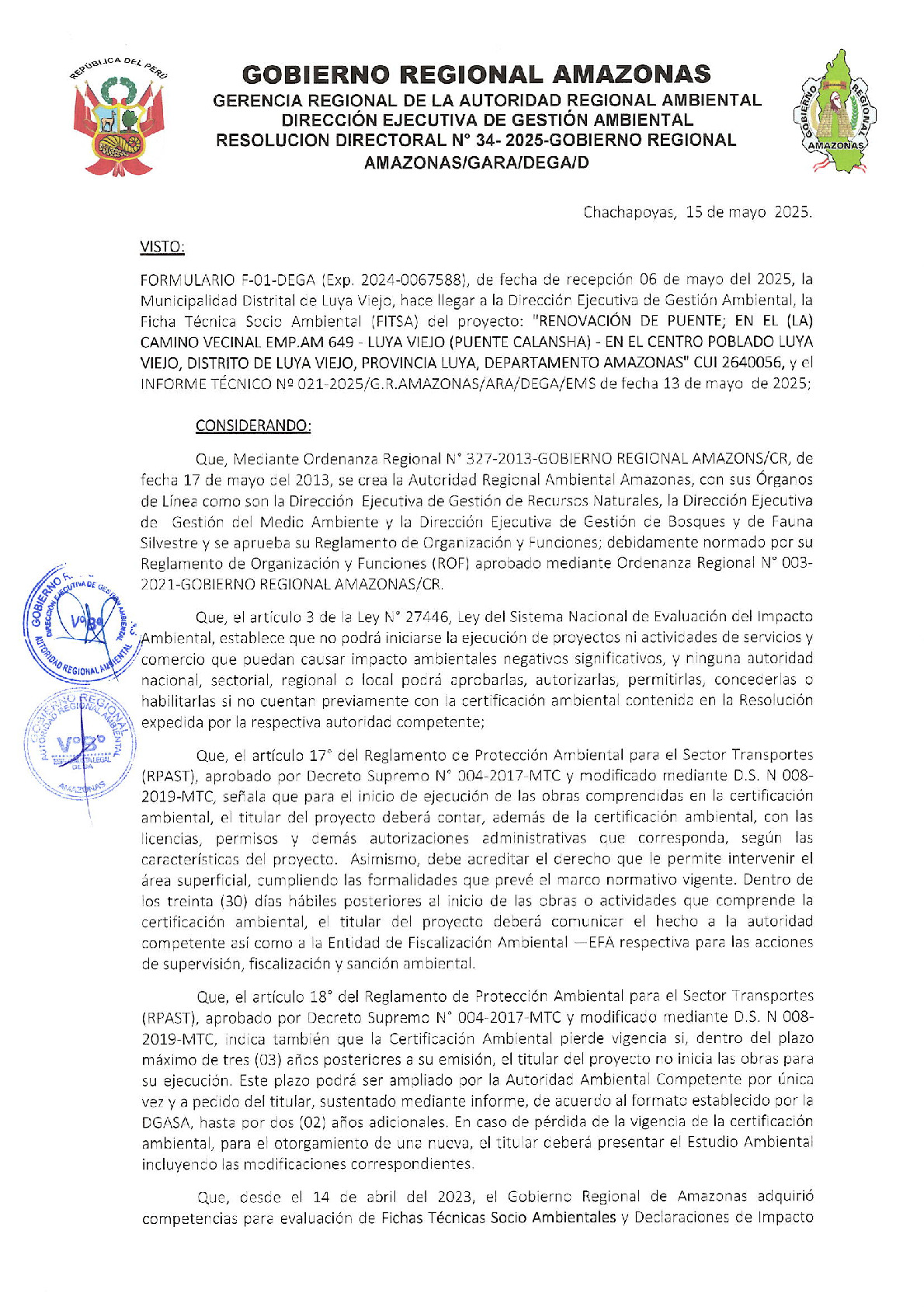 Resolución Directoral N° 034-2025 Gobierno Regional Amazonas