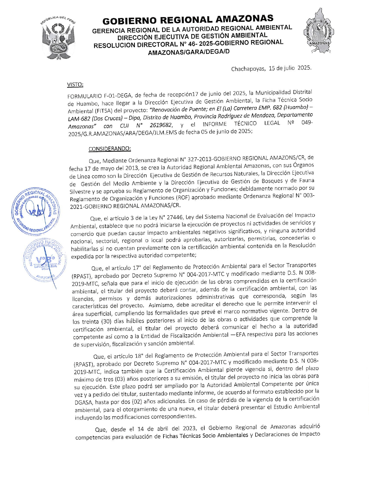 Resolución Directoral N° 046-2025-Gobierno Regional Amazonas