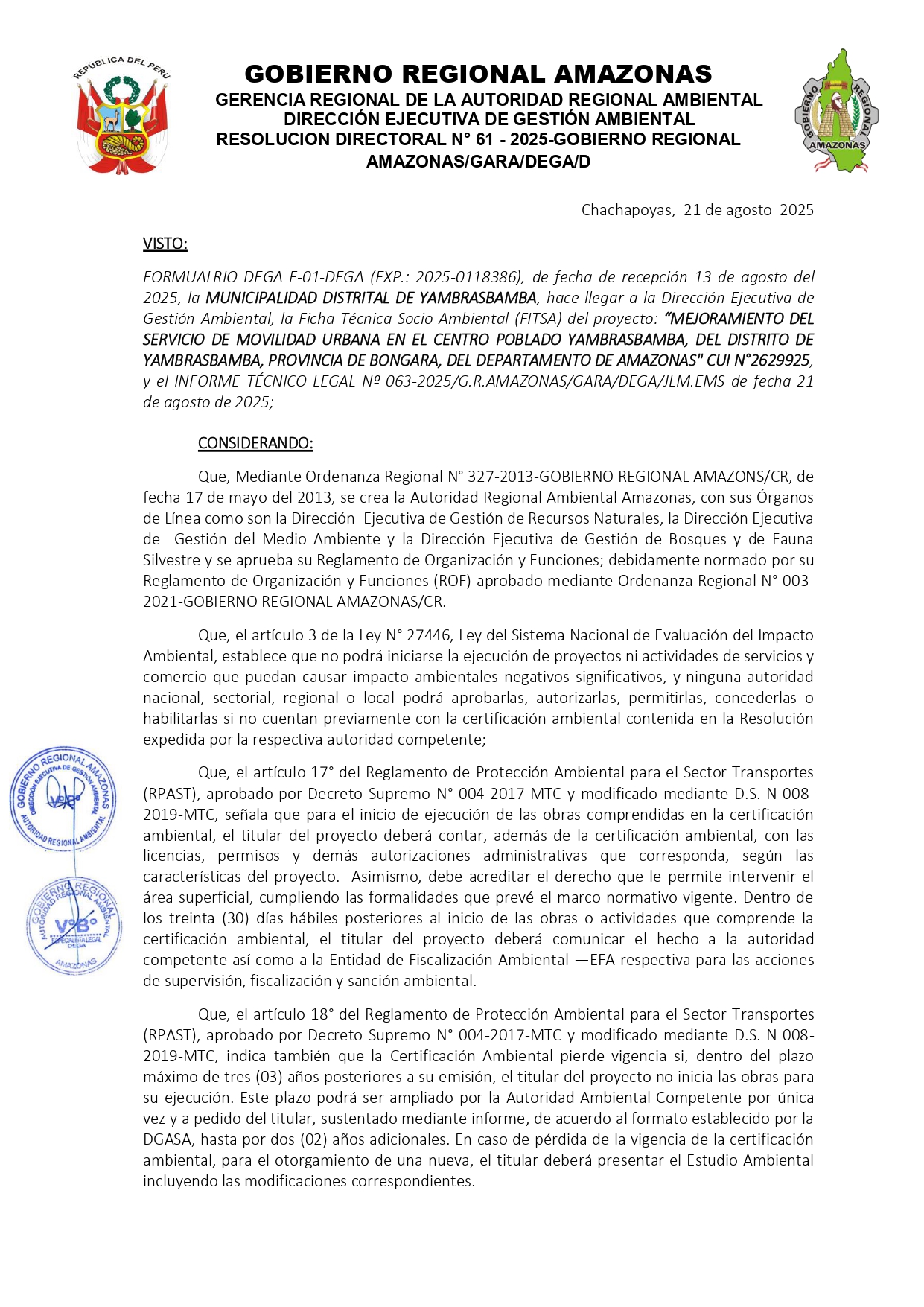 Resolución Directoral N° 061-2025-Gobierno Regional Amazonas