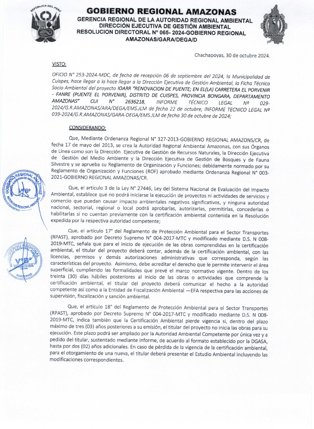 RESOLUCION DIRECTORAL N° 065-2024 GOBIERNO REGIONAL AMAZONAS