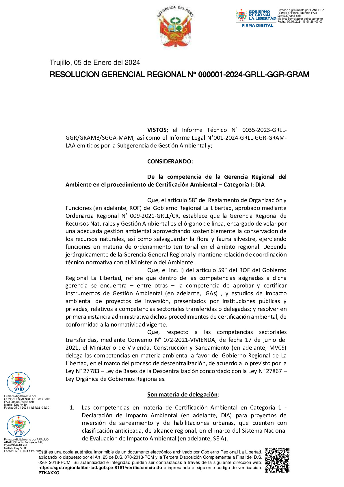 RESOLUCION GERENCIAL REGIONAL N° 000001-2024-GRLL-GGR-GRAM