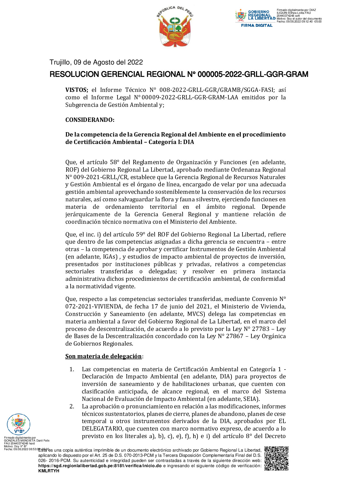 RESOLUCION GERENCIAL REGIONAL N° 000005-2022-GRLL-GGR-GRAM