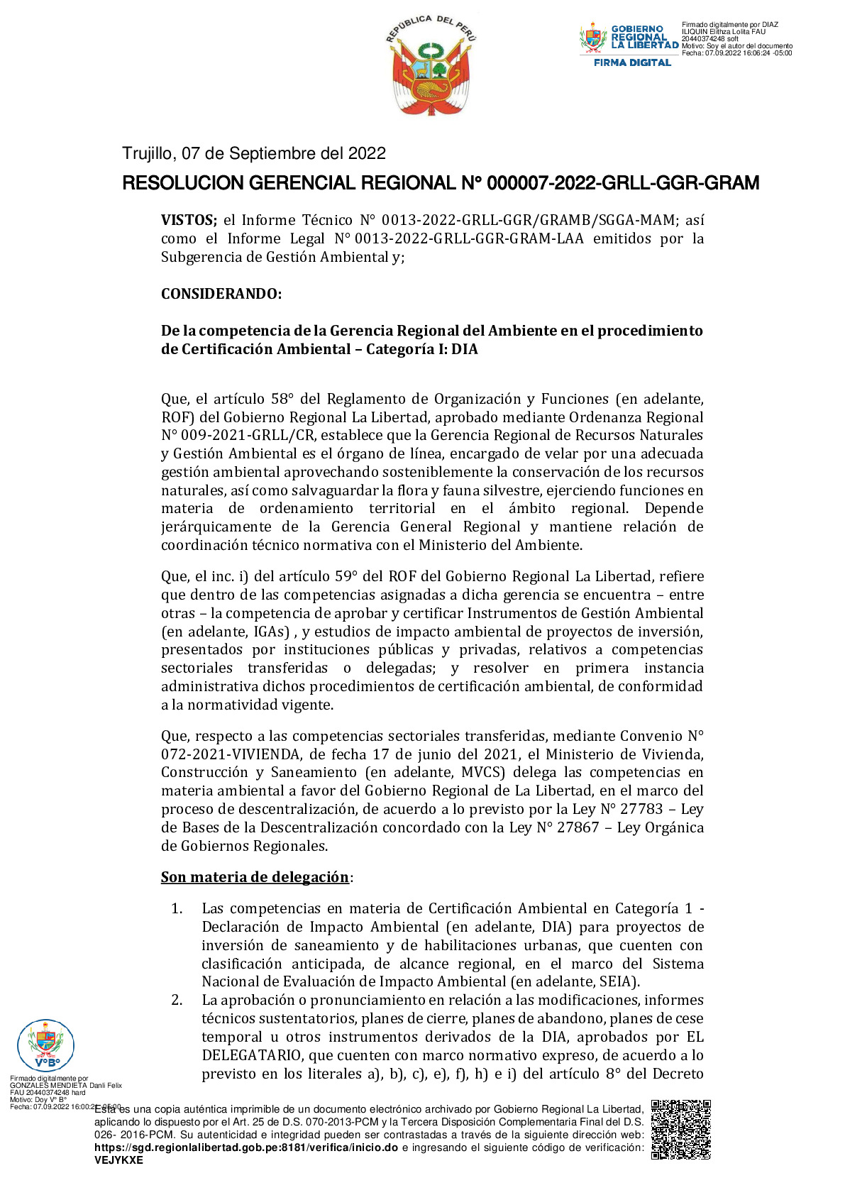 RESOLUCION GERENCIAL REGIONAL N° 000007-2022-GRLL-GGR-GRAM