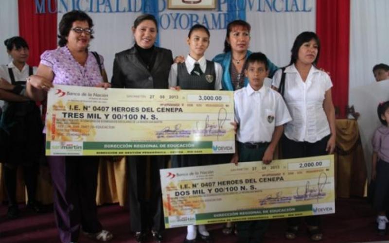 La Dirección Regional de Educación de San Martín, a través del programa de actividades de promoción de capacidades educativas en riesgos ambientales DEVIDA-PIRDAIS, ha entregado estímulos económicos a 30 Instituciones Educativas quienes participaron en el III Concurso Regional de Econegocios 2013, con proyectos de innovación productivos y ambientales.