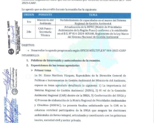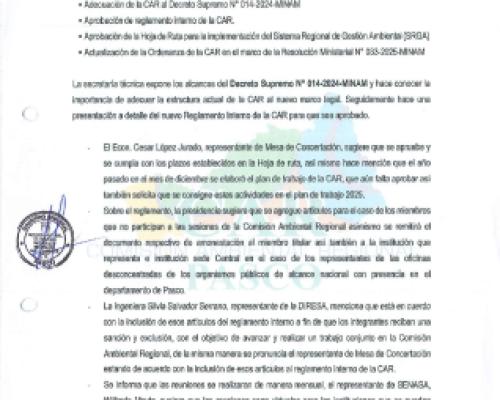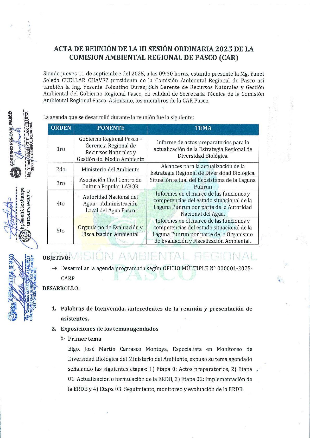 Acta de Reunión de la III Sesión Ordinaria 2025 de la Comisión Ambiental Regional de Pasco (CAR)