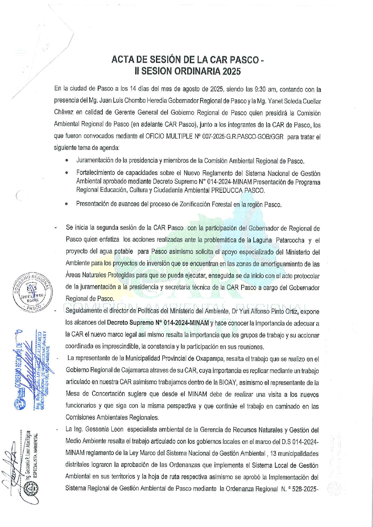 Acta de Sesión de la CAR Pasco – II Sesión Ordinaria 2025