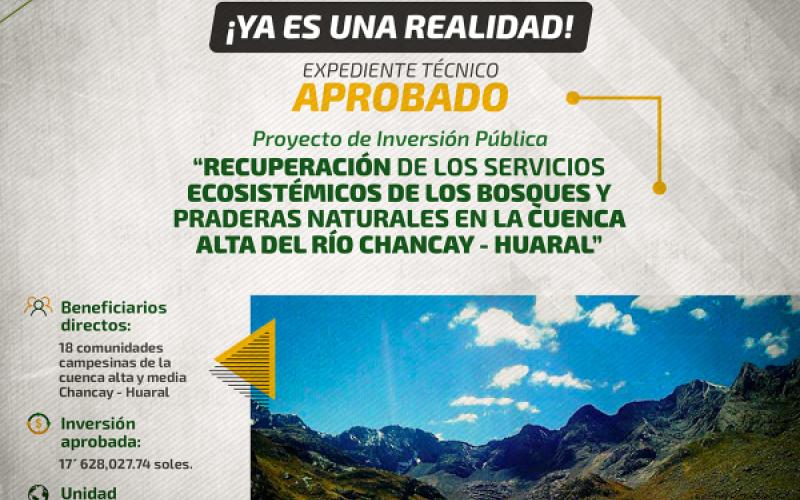 La Gerencia Regional de Recursos Naturales y Gestión del Medio Ambiente del Gobierno Regional de Lima, aprobó el expediente técnico del Proyecto de Inversión Pública “Recuperación de los servicios ecosistémicos de los bosques y praderas naturales en la cuenca alta del río Chancay-Huaral”, elaborado en trabajo colaborativo y de manera articulada con el Consejo de Recursos Hídricos de Cuenca Chancay Huaral y esta Gerencia, siendo clave, la gestión de los recursos hídricos y gestión del territorio integrando acciones en infraestructura natural, con el decisivo apoyo de la Autoridad Nacional del Agua.