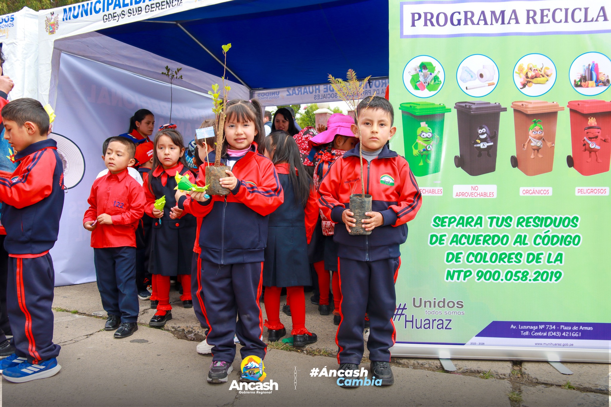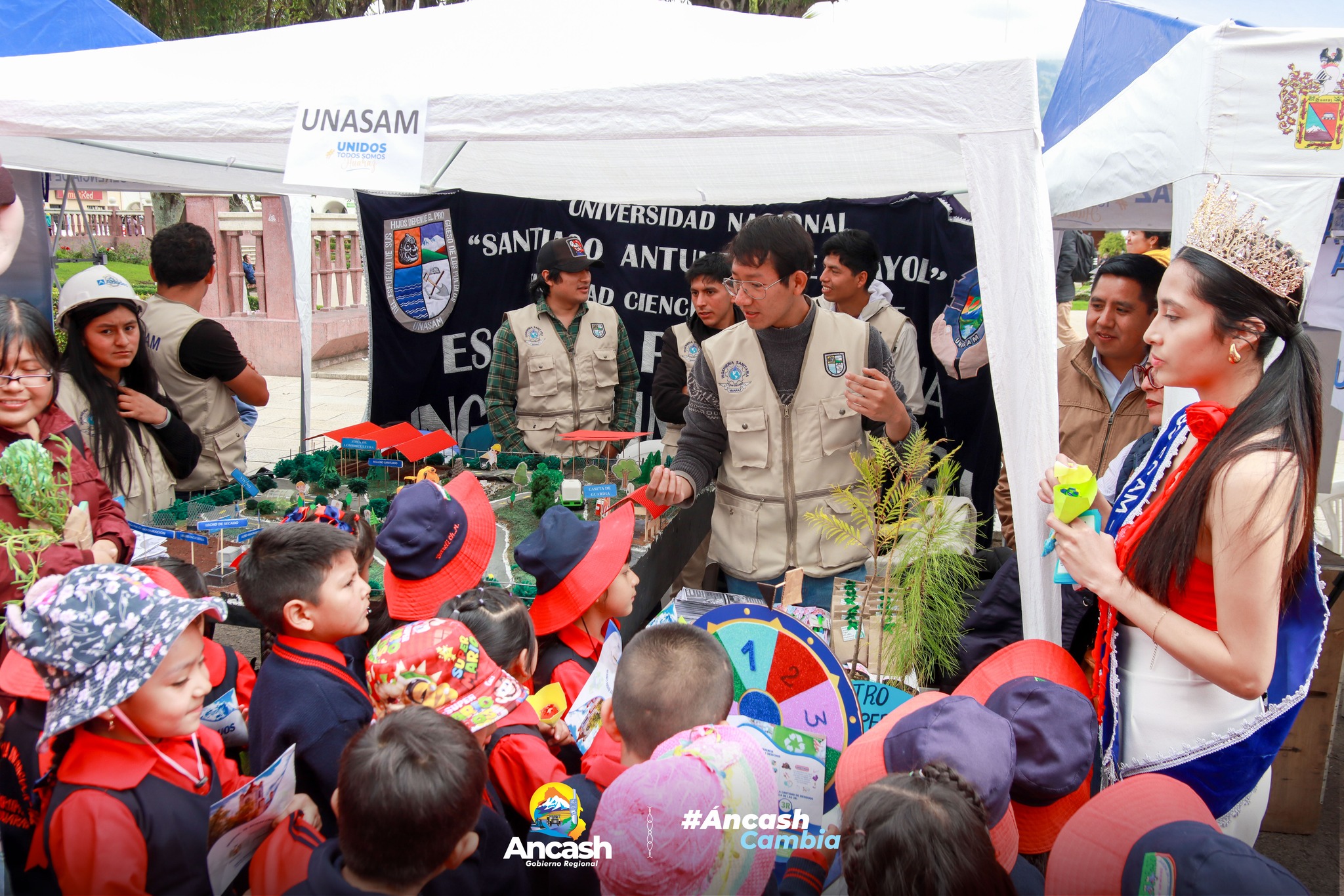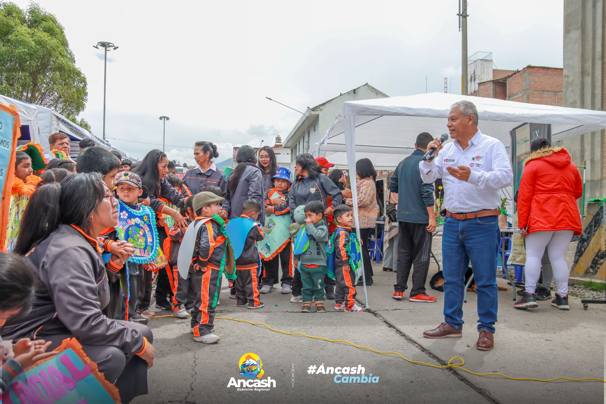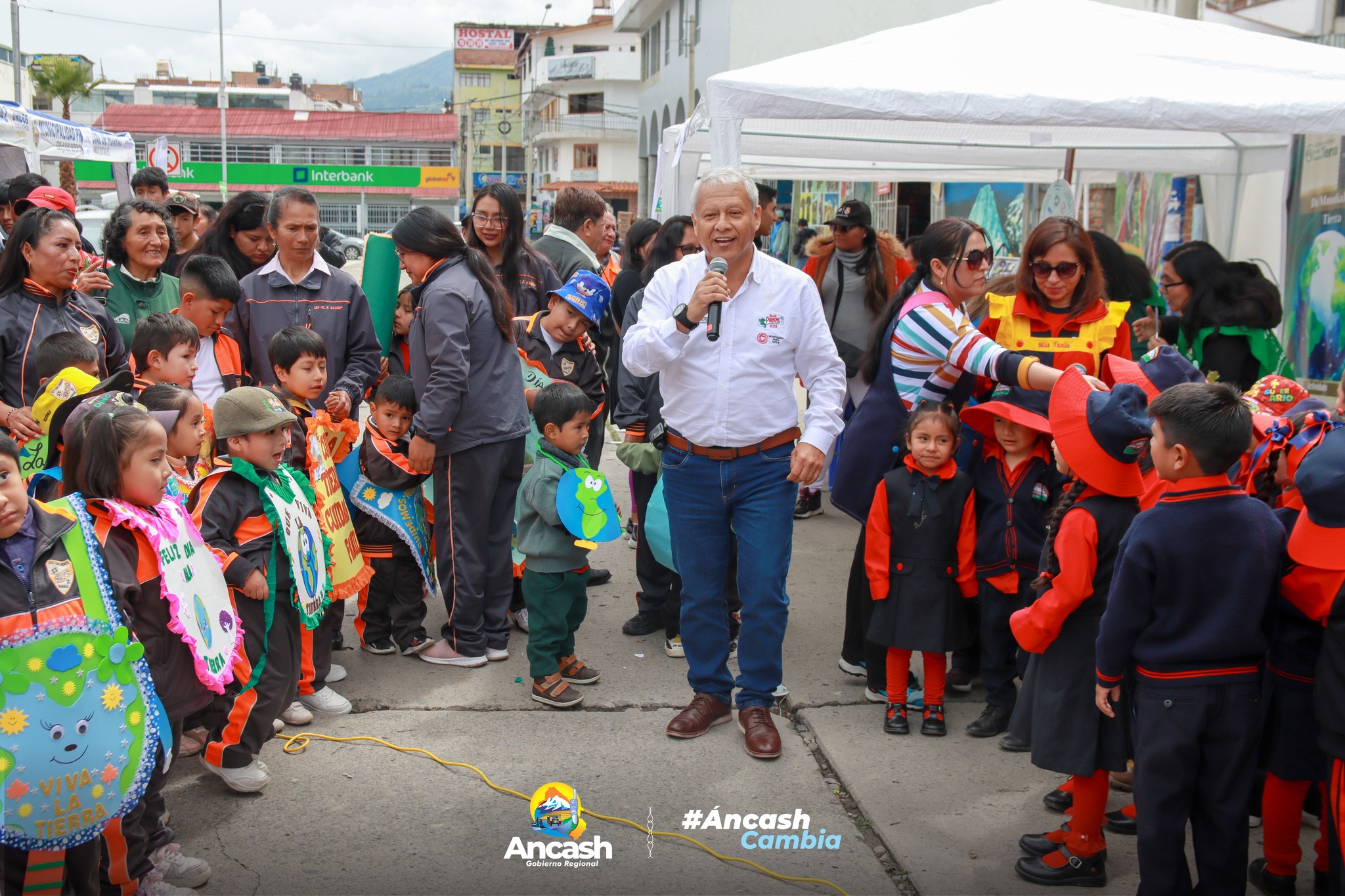 * Como parte de la actividad oficial, las autoridades participaron de la Feria por el Día Internacional de la Madre Tierra organizada por la Municipalidad Provincial de Huaraz, espacio en el que cientos de niños y jóvenes rindieron homenaje a nuestro planeta y mostraron su compromiso con el cuidado ambiental.