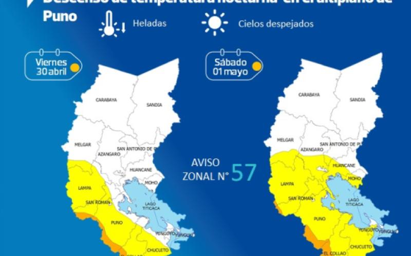 Descenso de temperatura nocturna en el altiplano de Puno, en las provincias de Melgar, Azángaro, Lampa, San Román, Puno, El Collao, Chucuito, Yunguyo.