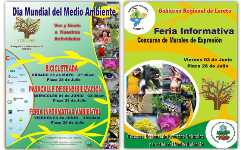 El Gobierno Regional de Loreto a través de su Gerencia Regional de Recursos Naturales y Gestión del Medio Ambiente vienen organizando un nutrido programa en el marco de DIA MUNDIAL DEL MEDIO AMBIENTE denominado: BOSQUES: LA NATURALEZA A TU SERVICIO, el consite en la realizacion de conferencias, pasacalles, siembra de árboles y recorridos en bicicleta como un modo de sensibilizar a la poblacion loretana sobre la importancia de cuidar el medio ambiente y los recursos naturales, contribuyendo positivamente en la reduccion del calentamiento global.
