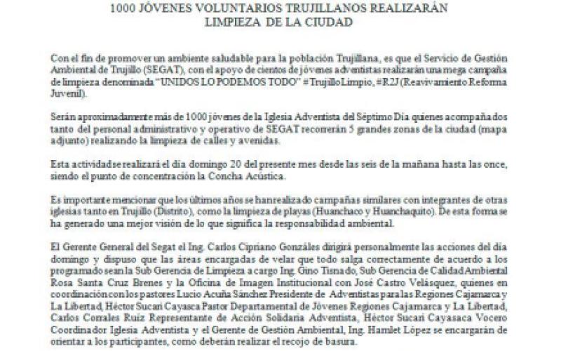 Campaña de Limpieza en Trujillo: JUNTOS TODO LO PODEMOS