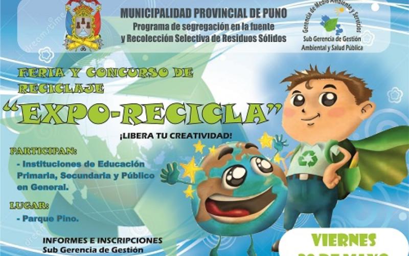 LA MUNICIPALIDAD PROVINCIAL DE PUNO A TRAVÉS DE LA SUBGERENCIA DE GESTIÓN AMBIENTAL Y SALUD PÚBLICA CONVOCA A TODAS LAS INSITITUCIONES EDUCATIVAS DE LA UGEL PUNO A LOS CONCURSOS ESCOLARES 2014: EL II CONCURSO EXPORECICLA Y EL PREMIO AL CIUDADANO AMBIENTAL ESCOLAR LOCAL 2014.