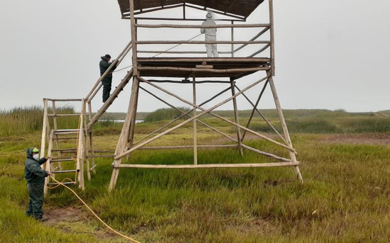 Gerenta Regional de Recursos Naturales y Gestión del Medio Ambiente, Blga. Karina Takahashi Santos, en un trabajo articulado con la Sub Gerencia de Turismo de la Municipalidad Distrital de Vegueta, realizó la desinfección de las estructuras e instalaciones del Área de Conservación Regional Albufera de Medio Mundo.