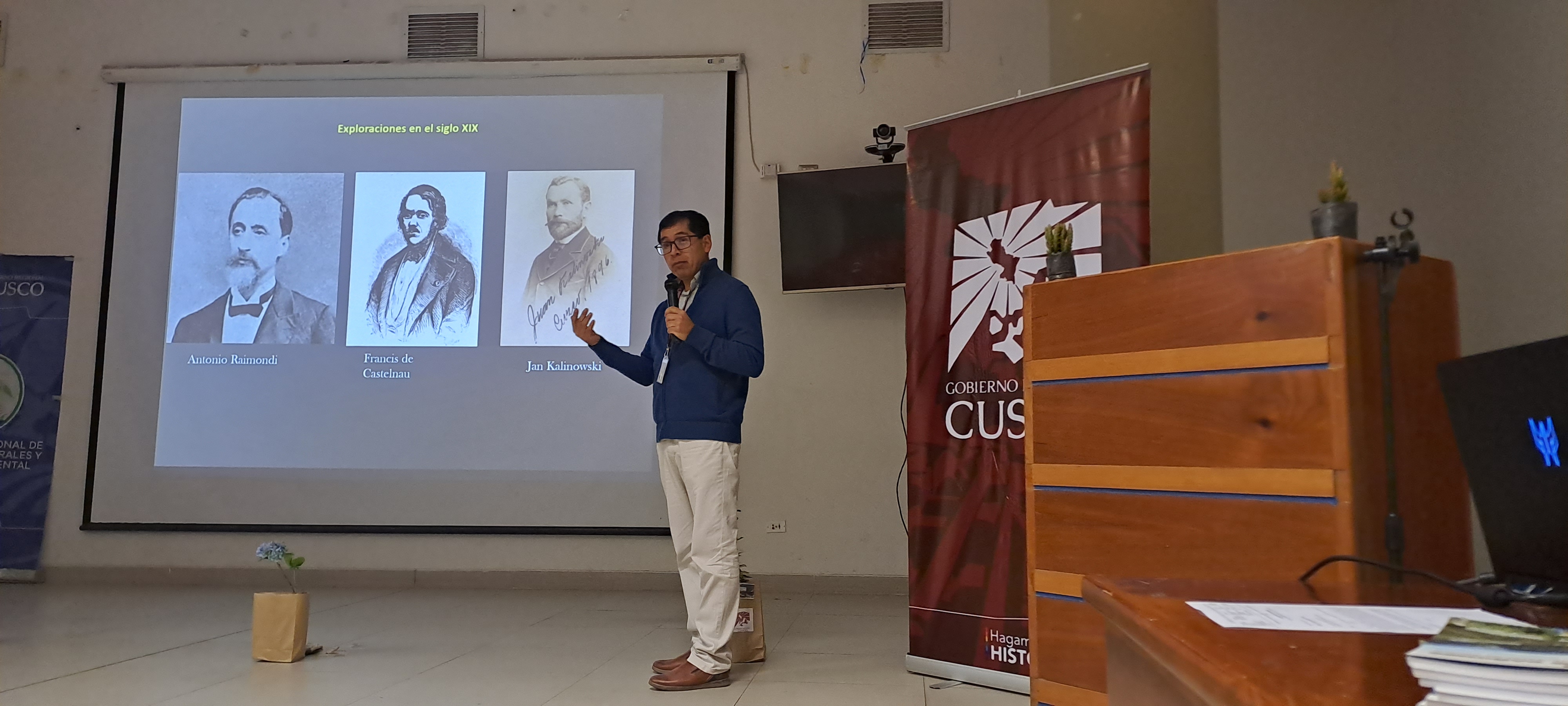 Las exposiciones estuvieron a cargo de los siguientes especialistas: de la UNSAAC, Docente Dr. Jose Ochoa y la Ex Docente Mg. Rosa Urrunaga del SERNAP Santuario Histórico de Machupicchu el Ing. Vladimir Ramirez y de la GRRNGA el Blgo. Israel Aragón