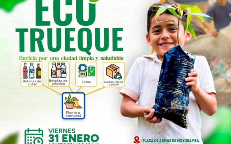 El Gobierno Regional San Martín con la Municipalidad Provincial de Moyobamba, de manera articulada se realizo el dia 31/01/2025 la Feria Ambiental "ECO TRUEQUE" en los ambientes de la plaza de armas de la ciudad de Moyobamba, con la finalidad de sumar esfuerzo para tener una conciencia ambiental amigable para un mejor cuidado de nuestro planeta , la cual tuvo por objetivo sensibilizar y generar en la instituciones públicas y privadas, la sociedad civil , la iniciativa de sensibilizar y concientizar a la ciudadanía sobre la importancia del manejo de los residuos que generamos cotidianamente, para con ello transar un intercambio de plástico, cartón, papel, botellas y vidrios por incentivos como : plantones ornamentales y maderables,taller de arte, juegos para niños y regalos sorpresas en los participantes ![]()