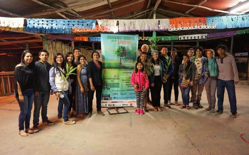 SALVANDO TIERRAS EN TU BARRIO, es una actividad impulsada por la Plataforma del Cine Club Salvando Tierras. Se llevó a cabo el pasado 05 de Noviembre del presente año. La jornada inició en la mañana, con la participación de artistas plásticos: Miguel Correa, Diego Capuena y Walter Roque “Shapingo”, quienes realizaron un mural alusivo a la naturaleza, historia y tradición del Barrio Lluyllucucha. Por la tarde a partir de las 5:00pm la Asociación Cultural Mayoruna, presentó un show artístico para niños, adultos. Al finalizar la tarde a partir de las 7:00pm se presentó la proyección del documental “Antes que sea tarde” en el marco de la Semana Forestal, en trabajo conjunto con la Autoridad Regional Ambiental – ARA San Martín, se entregó plantones de árboles maderables a los participantes, con la campaña Adopta un árbol, para que sean plantado como símbolo de compromiso y cambio, desde los hogares, barrios, escuelas, universidades, etc.