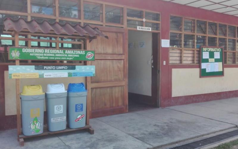 Se inició realizando una charla sobre el uso y cuidado de los tachos de basura, como también informarles acerca del convenio interinstitucional que firmo la Autoridad Regional Ambiental de Amazonas con las II.EE focalizadas de la región, gracias a ese convenio se realizó la donación de estos módulos de reciclaje.