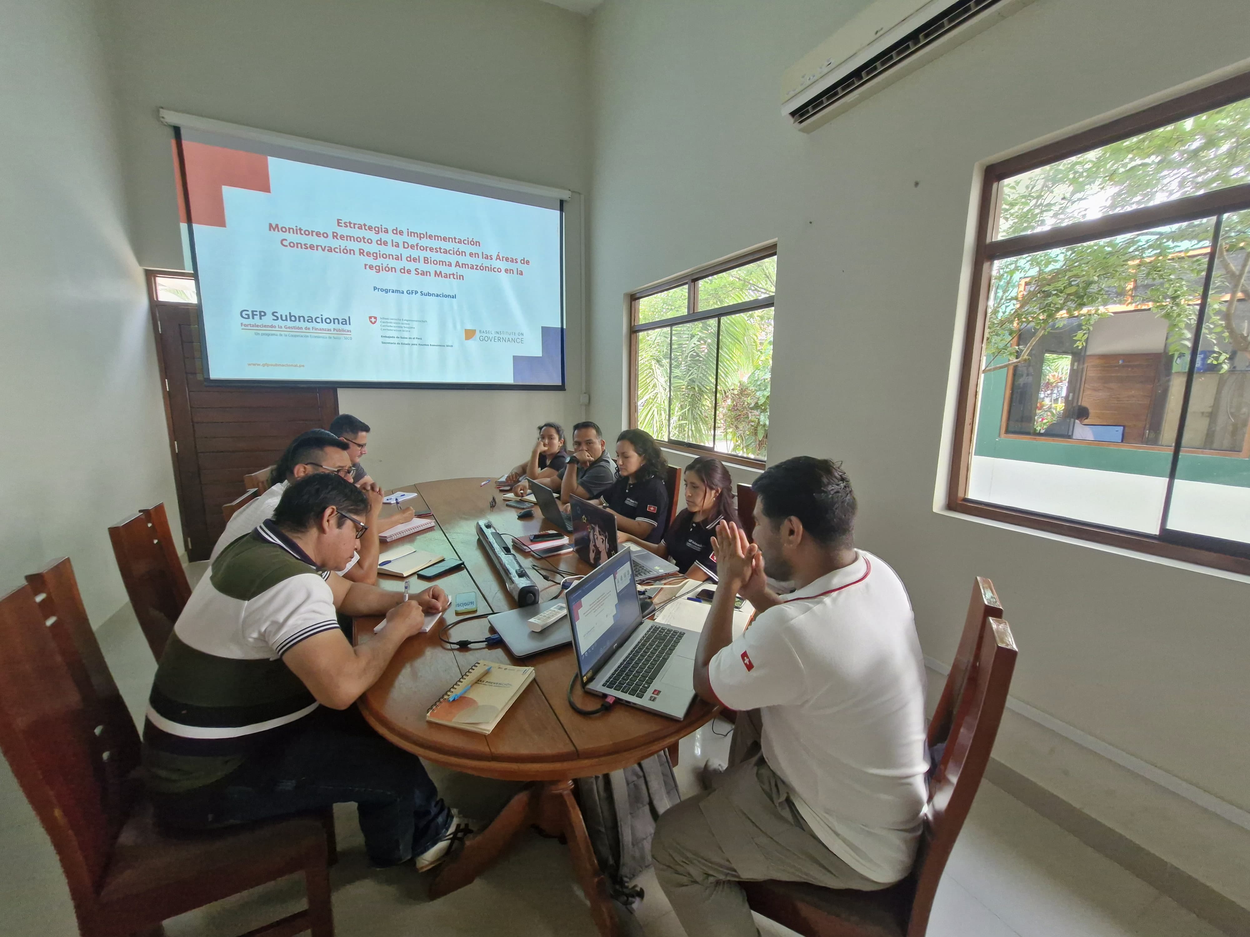 El equipo técnico del Gobierno Regional de San Martín, a través de la Autoridad Regional Ambiental, en coordinación con el equipo técnico de la Infraestructura de Datos Espaciales Regional de San Martín, la Dirección General de Flora y Fauna Silvestre y la Dirección de Gestión Territorial, se sostuvo una reunión de coordinación, con el objetivo de fortalecer la gestión territorial y optimizar la respuesta ante la pérdida de cobertura forestal y formar parte de las acciones para implementar un sistema eficiente de alertas tempranas de deforestación. Este trabajo fue en coordinación con el Programa GFP Subnacional de la Cooperación Económica Suiza – SECO, en marco de la gestión participativa y de esta manera fortalecer la conservación de la biodiversidad
