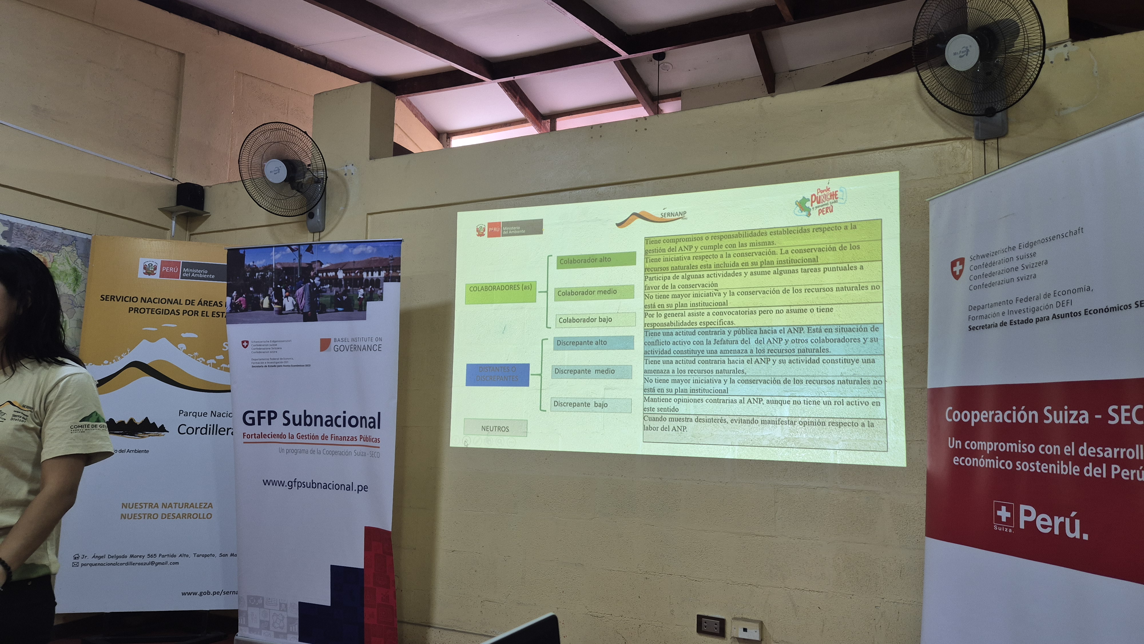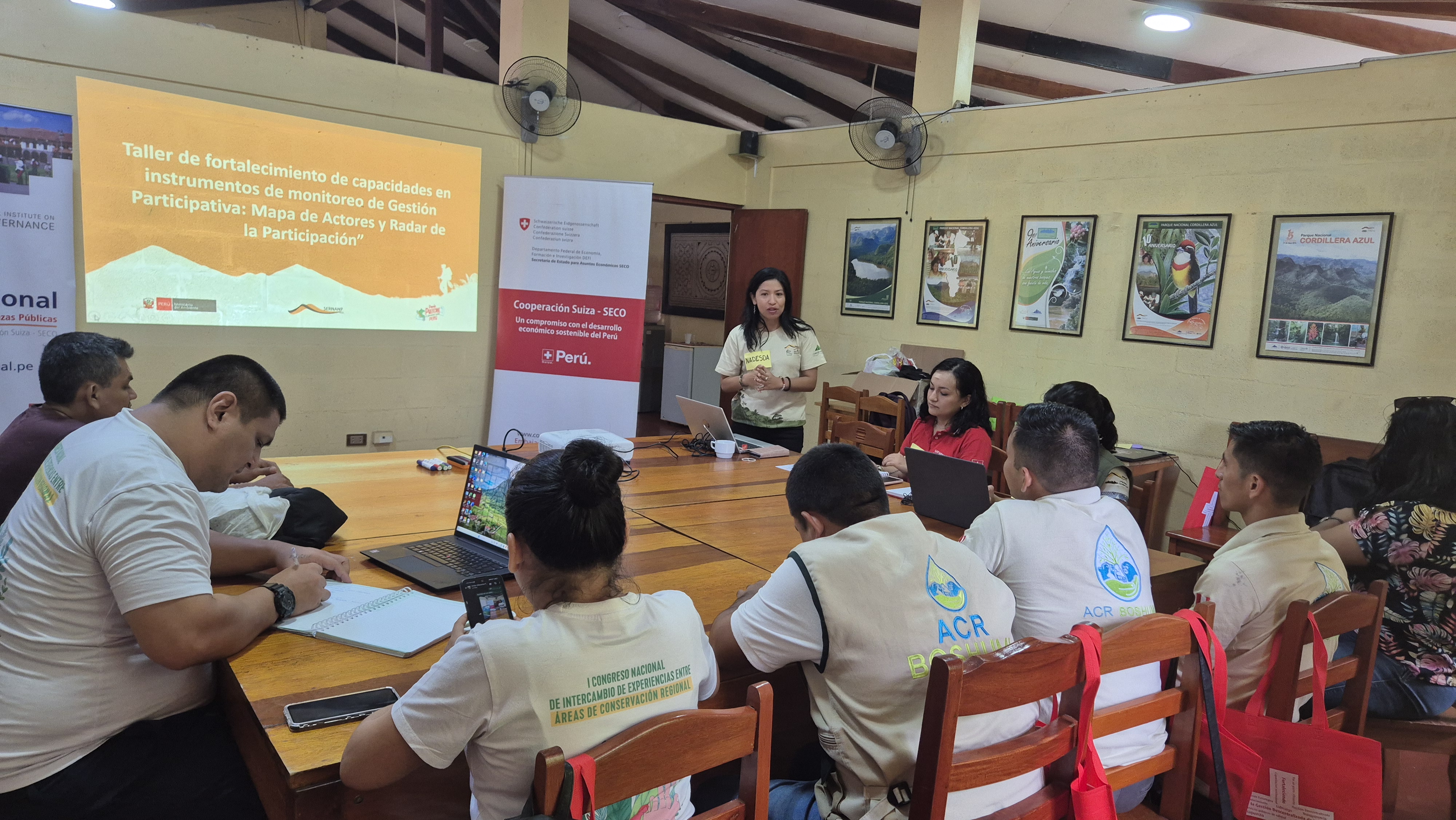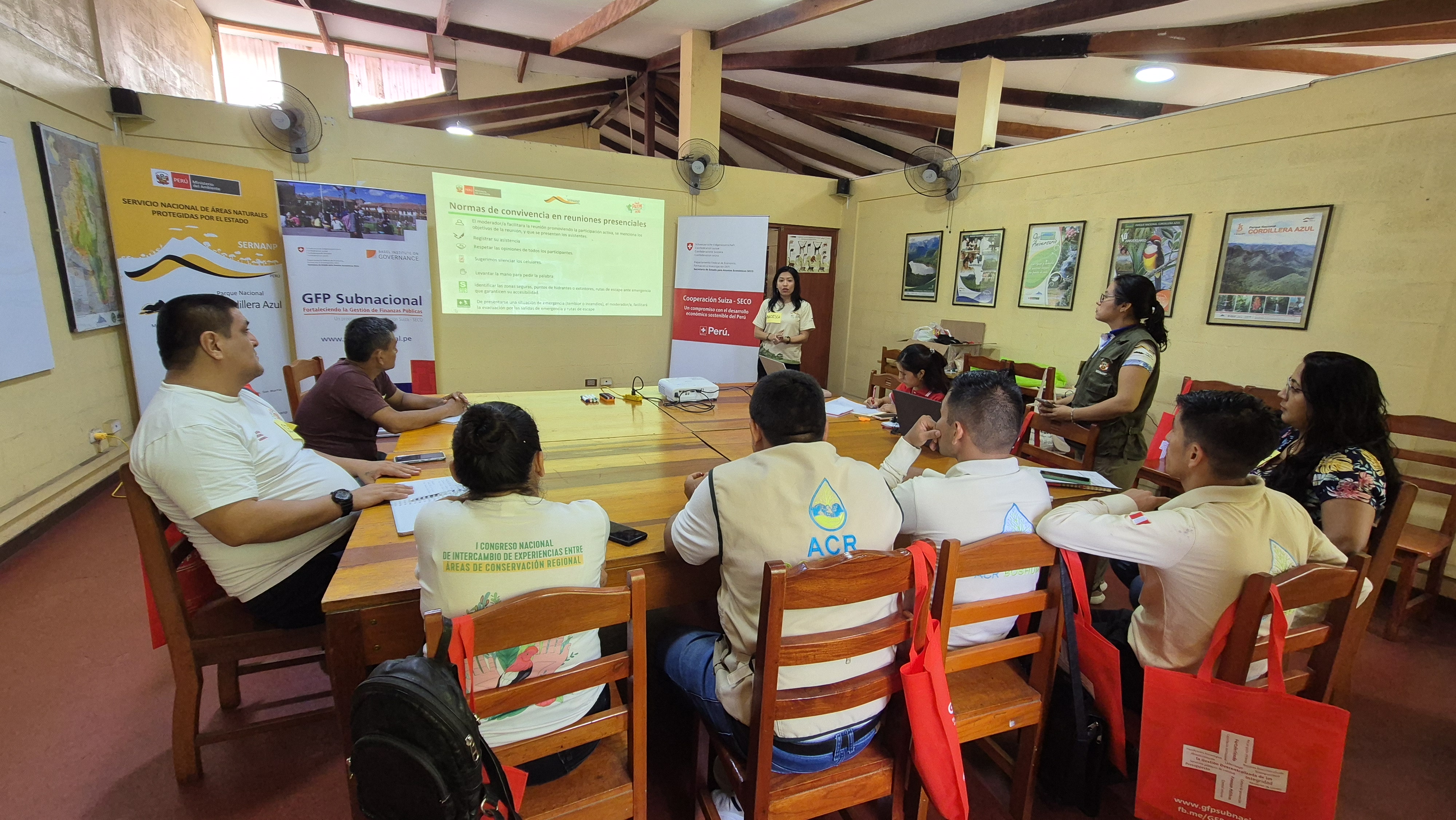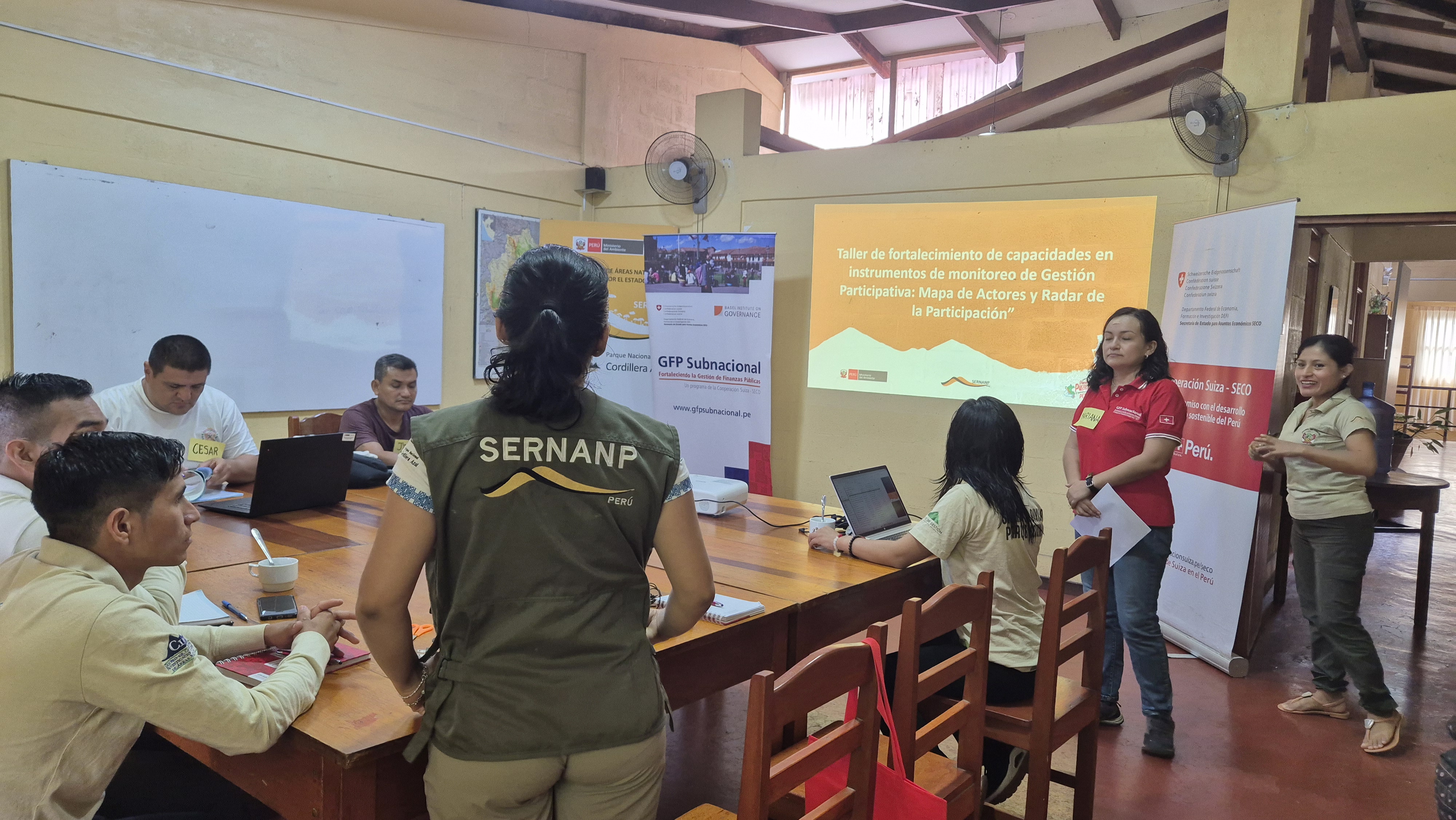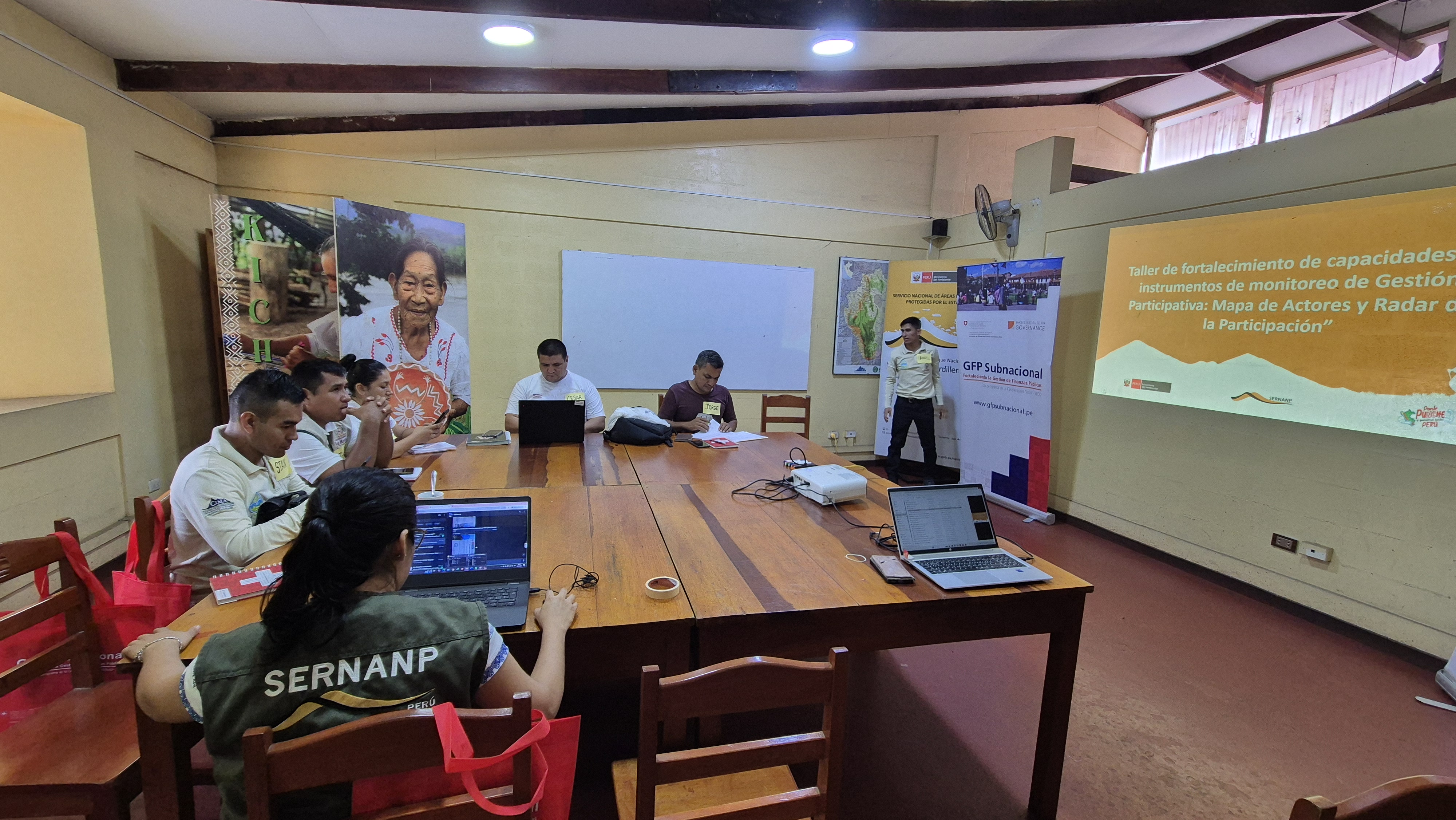 El taller tuvo por objetivo el fortalecimiento de capacidades en instrumentos de monitoreo de gestión participativa, la cual estuvo a cargo por el Servicio Nacional de Área Naturales Protegidas por el Estado y GFP subnacional, para reforzar las capacidades en el uso de Mapa de Actores, herramienta de vital importancia que permite identificar y analizar los distintos actores presentes en el territorio, sus relaciones y roles de poder. También esta orientada al uso del Radar de la Participación, instrumento la cual evalúa siete ejes fundamentales en la gestión participativa de las ANP, la cual incluye el funcionamiento del Comité de Gestión y la participación de grupos locales en acciones de conservación.