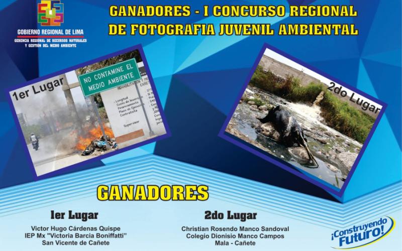 Estos son los ganadores del concurso de fotografía juvenil ambiental realizado en la Provincia de Cañete que organizó la Gerencia Regional de Recursos Naturales y Gestión del Medio Ambiente del Gobierno Regional de Lima.