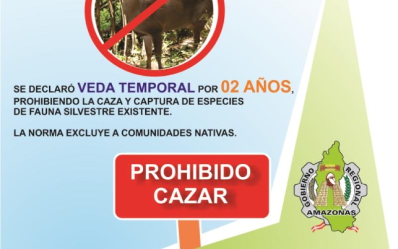 El Gobierno Regional de Amazonas, mediante RESOLUCION DE GERENCIA REGIONAL N° 001 -2013 GOBIERNO REGIONAL AMAZONAS/GR-ARA, declaró veda temporal a través de la Autoridad Regional Ambiental-ARA, por espacio de dos años, prohibiendo la caza y captura de especies de fauna silvestre existente, como medida de precaución para prevenir su extinción, promover su recuperación y evitar el desorden en los ecosistemas naturales. La norma excluye a las comunidades nativas, por hacer uso ancestral de los recursos naturales. Frente a la preocupación por parte del presidente regional José Arista Arbildo, a través de la Autoridad Regional Ambiental (ARA) y de acuerdo a sus competencias, se creyó conveniente aprobar la norma temporal para que garantice la perpetuidad de las especies de fauna en peligro, peligro crítico, peligro de extinción, evitando su total desaparición. Dentro de la norma regional se tiene establecido la protección desde aves como colibrí jaspeado, loro de nuca escamosa, tucaneta, tucán andino, guacamayo rojo, guacamayo verde, entre otros que están desapareciendo por la caza incontrolable que se viene ejecutando en diversas zonas de la región Amazonas. Con relación a la protección de mamíferos, están considerados mono nocturno, maquipasa, mono blanco, tocón, majaz, tigrillo, zorro andino, venado colorado, venado gris, oso hormiguero y otras especies consideradas en extinción, por ello se están tomando todas las medidas respectivas por ello en treinta días se conocerán las sanciones que recibirán los infractores. Por otro lado, dentro del contexto de la citada resolución se ha creído conveniente excluir de los artículos uno y dos a las comunidades nativas, por cuanto, éstas hacen uso de los recursos naturales en este caso de la fauna silvestre, siempre que se empleen armas tradicionales para la caza y captura de especies y que las mismas constituyan autoconsumo tradicional de poblaciones indígenas. Al respecto el gerente de la ARA Juan Moncada Alvites ha manifestado que las coordinaciones con los entes respectivos, caso las oficinas de medio ambiente de los municipios, Fiscalía Ambiental, Policía Forestal, Rondas Campesinas, serán los principales aliados para combatir estos flagelos forestales que atentan contra el ecosistema y medio ambiente.