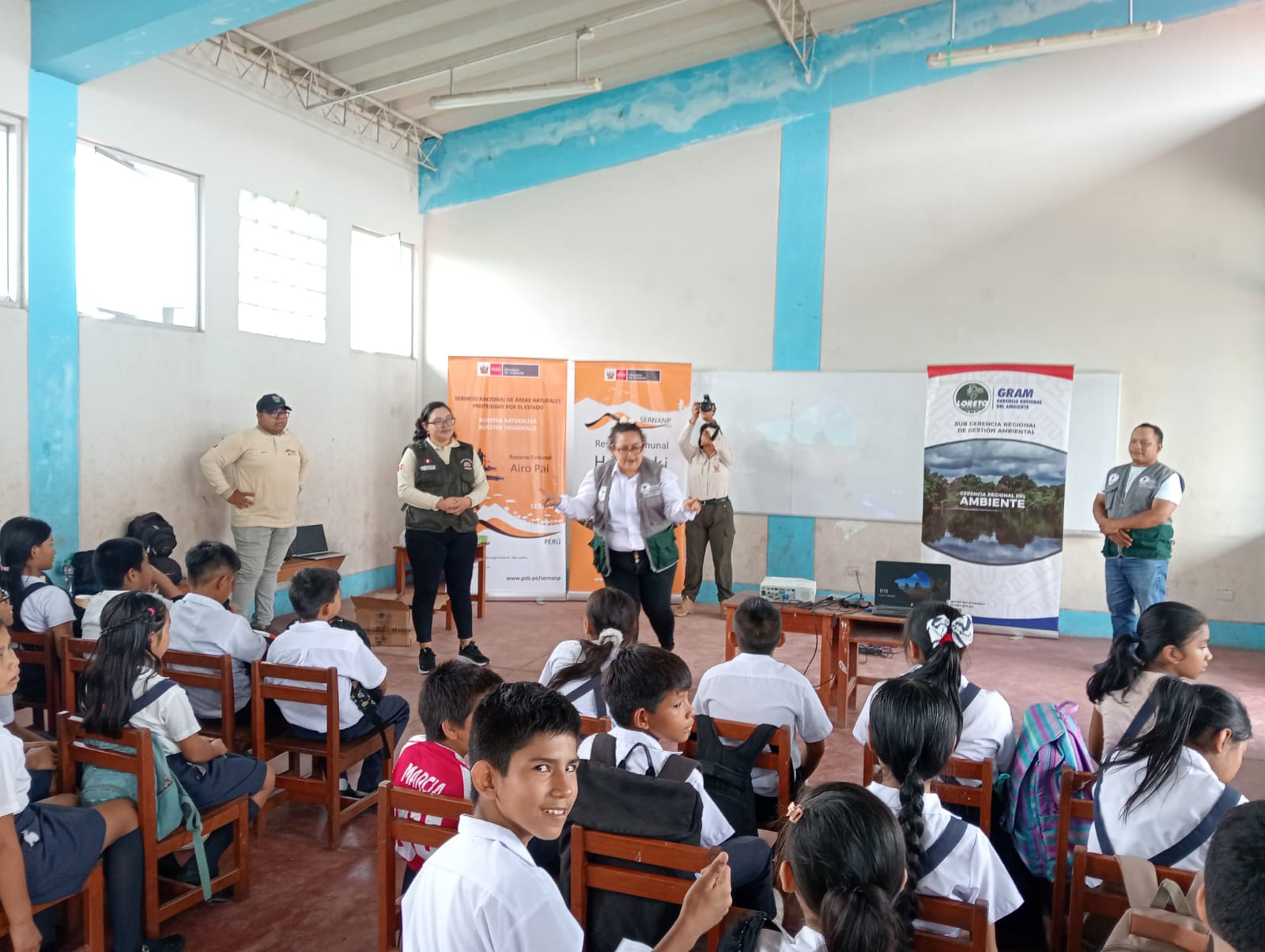 Asimismo, se desarrolló una charla educativa en la Institución Educativa Carmen Rosa Panduro, dirigida a los estudiantes de nivel primario. La actividad contó con la participación del Servicio Nacional de Áreas Naturales Protegidas por el Estado (SERNANP), y abordó la importancia de los animales silvestres y su rol fundamental en el equilibrio del ecosistema. Los escolares se mostraron entusiastas y comprometidos con el aprendizaje, en una jornada que fortaleció su conexión con la naturaleza.