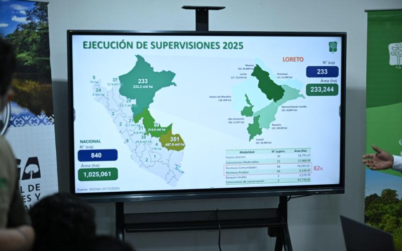 Asimismo, se presentaron los principales hallazgos del estudio Medición del índice y porcentaje de tala y comercio ilegal de madera en el Perú, periodo 2024, información que contribuirá a fortalecer las estrategias de prevención y control en el territorio regional.
