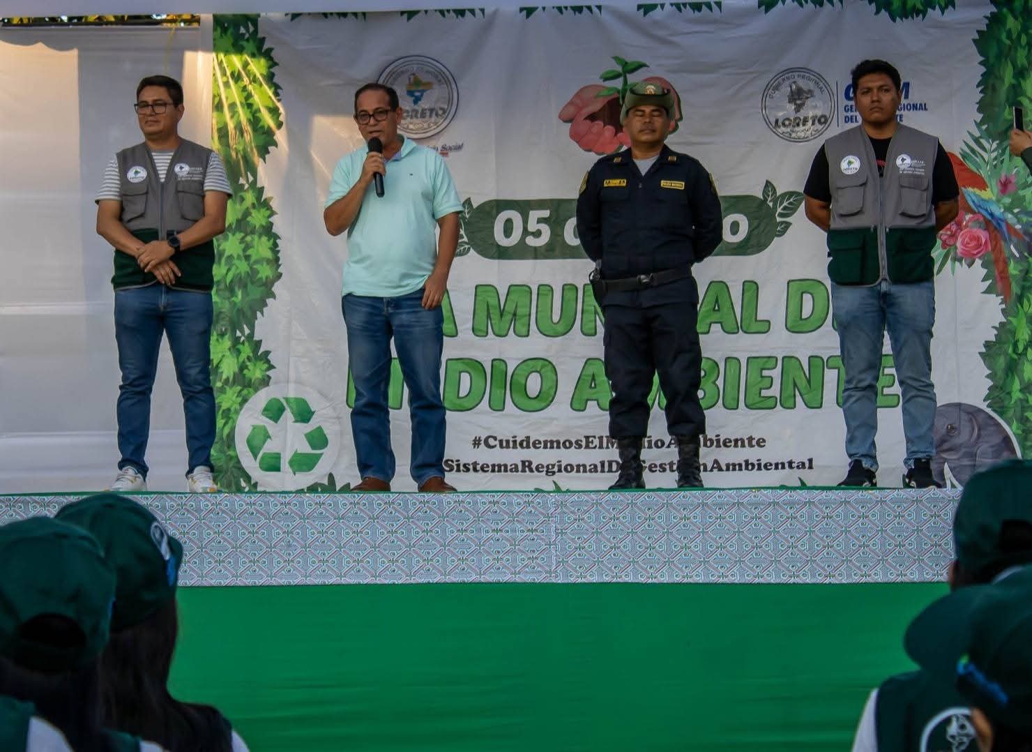 El 06/07/2025 en el marco de la celebración Día Mundial del Medio Ambiente, más de 180 estudiantes de primaria y secundaria fueron juramentados como brigadistas ambientales escolares en una ceremonia realizada en la explanada del Gobierno Regional de Loreto.