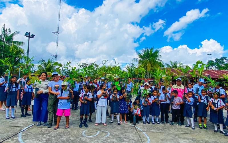 Durante la actividad se entregaron plantones de aguaje, huasaí, copal y toronja, fomentando la reforestación y la responsabilidad individual con la tierra. Al final del año escolar, FECONA premiará a quienes conserven sus árboles en buen estado.