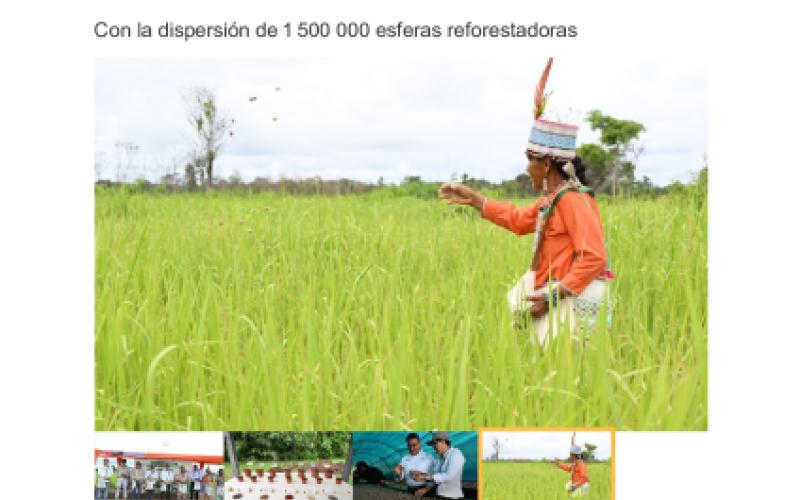 En la comunidad nativa Puerto Firmeza, situada en el distrito de Yarinacocha, se dio inicio a la restauración de áreas afectadas por los incendios forestales mediante la diseminación de 1 500 000 esferas reforestadoras, que contienen semillas nativas de la zona.