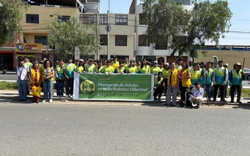 Gran jornada de arborización con plantones de algarrobo en la Av. Villarreal