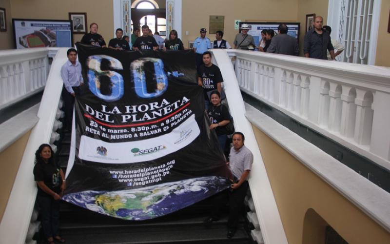 La Municipalidad Provincial de Trujillo a través del Servicio de Gestión Ambiental de Trujillo (SEGAT), por quinto año consecutivo se suma a esta gran campaña mundial, convocando a las diversas instituciones, sociedad civil, hogares, negocios, apagar nuestras luces y artefactos eléctricos, demostrando así el compromiso de todos los trujillanos con el cuidado de nuestro planeta. Es por ello que la Subgerencia de Calidad Ambiental, vendrá sensibilizando durante el mes de marzo a toda la población de Trujillo y sus distritos en apagar la luz, durante una hora, para ayudar a reducir el calentamiento global.
